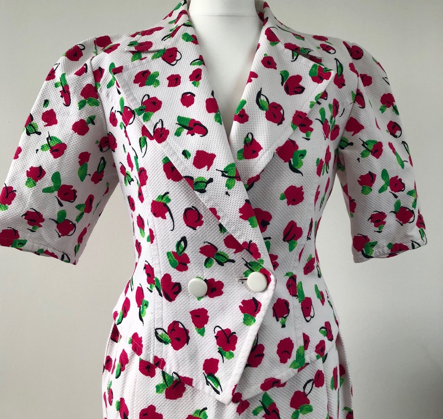 Size: 40 – Jacket length 51 cm x Sleeves 33 cm – Skirt length 58 cm – Waist 73 cm – Hips 91 cm.