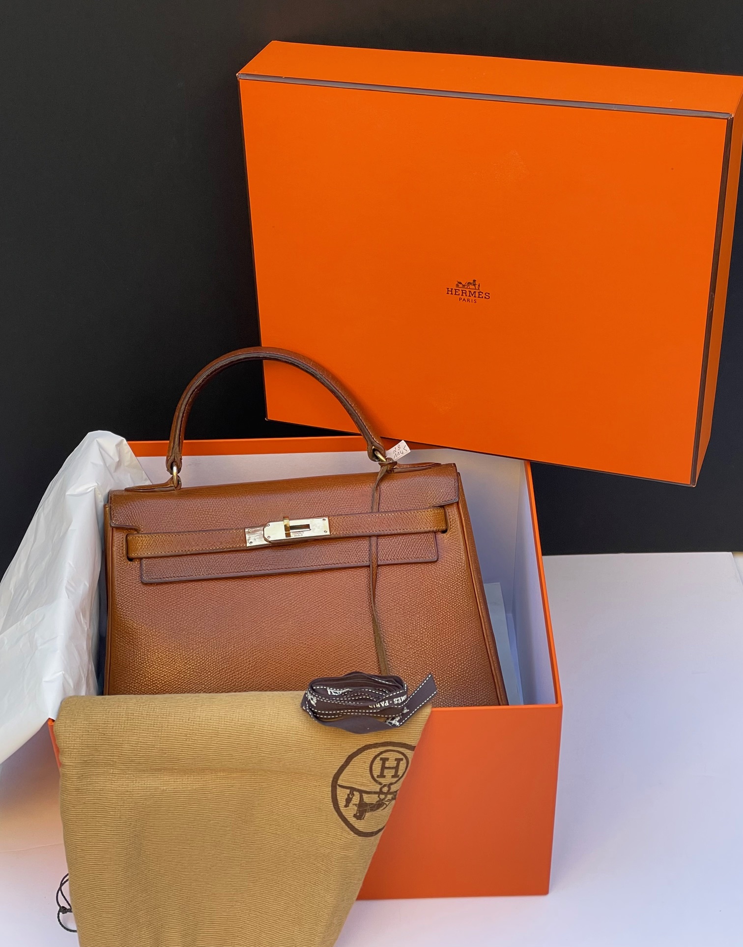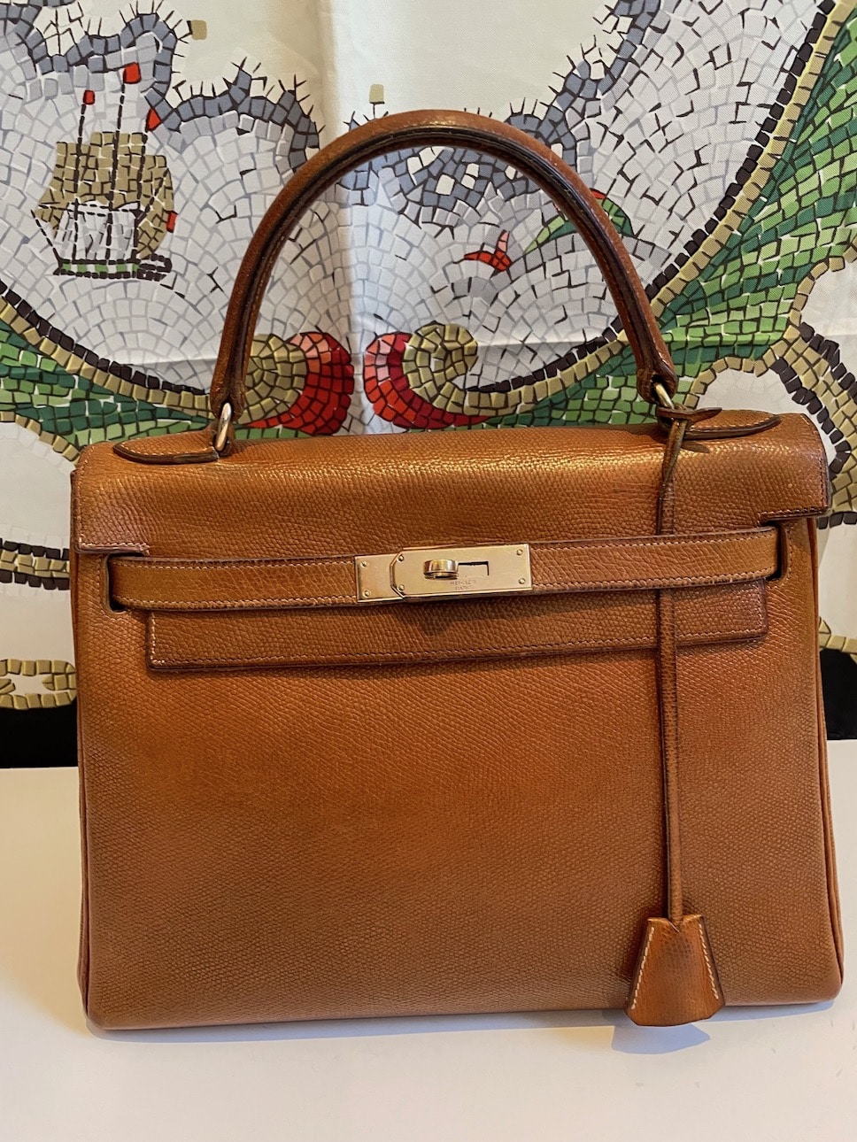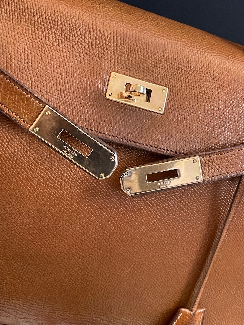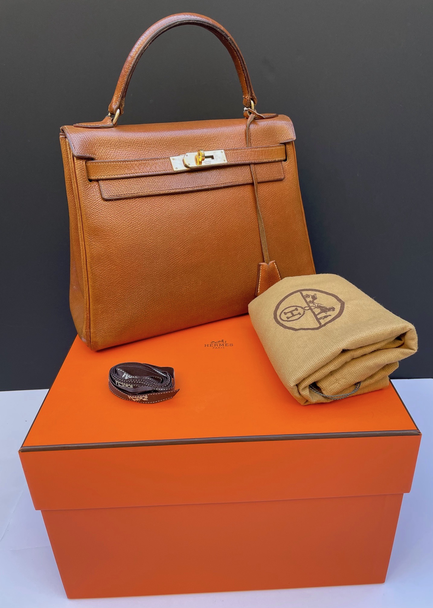 HERMÈS 1945 Iconic Vintage Kelly 28 Sellier Box Gold Courchevel Leather GHW