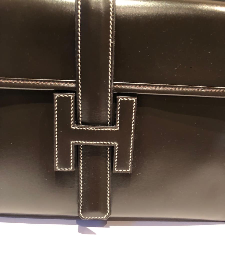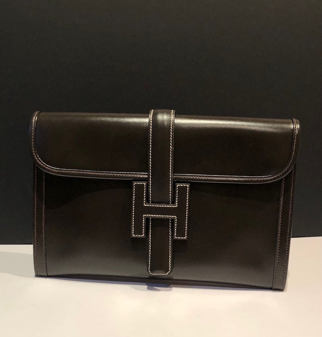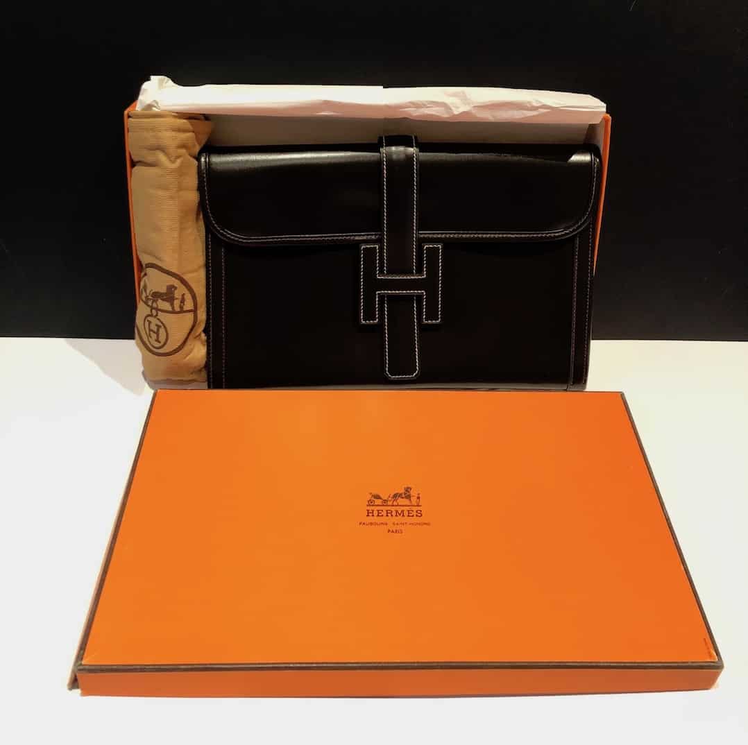 HERMÈS 1985 Jige Clutch Box Leather Never Worn W/Box Vintage