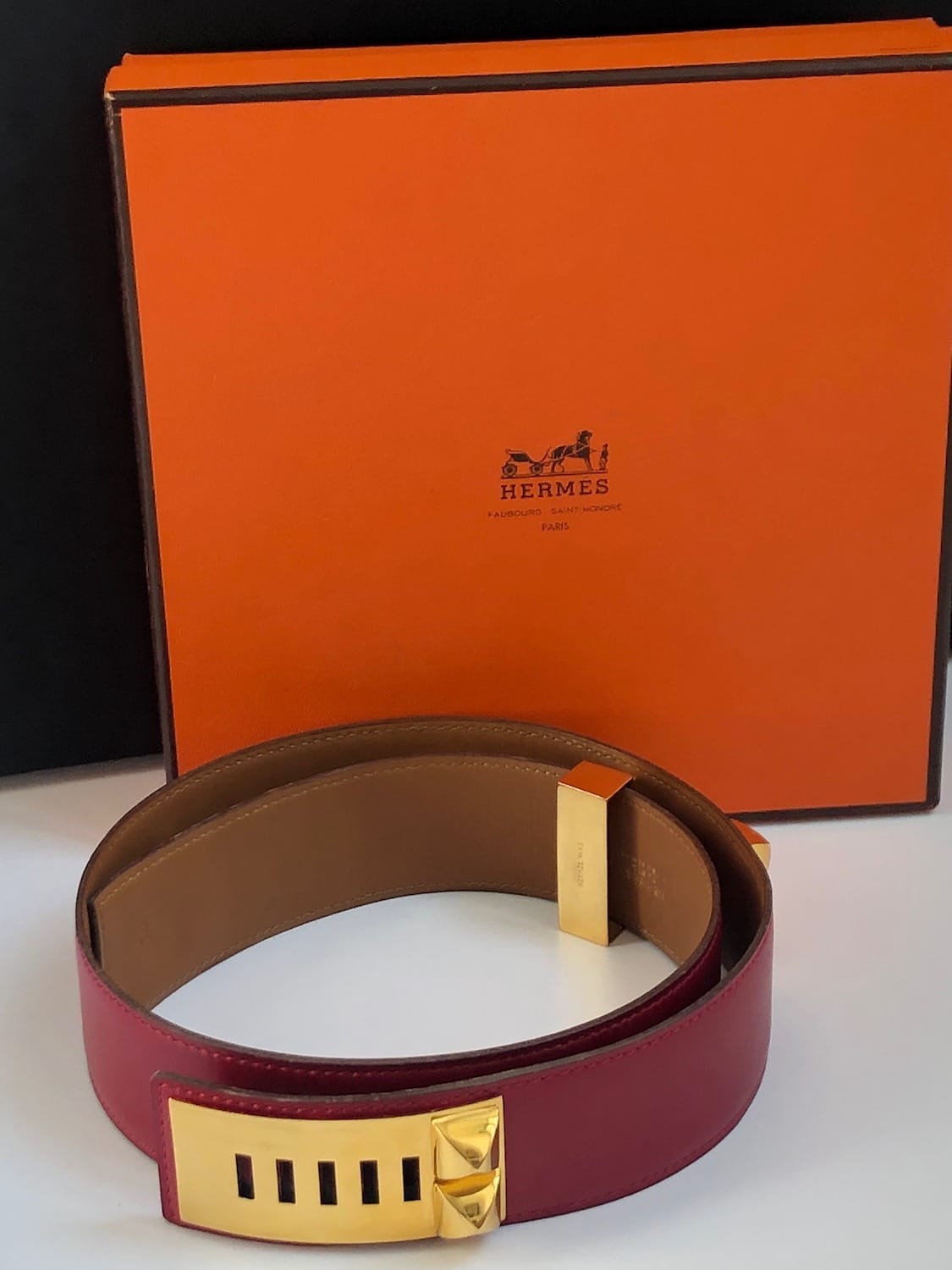 HERMÈS 1991 Collier de Chien CDC Médor Vintage Belt Red GHW W/Box