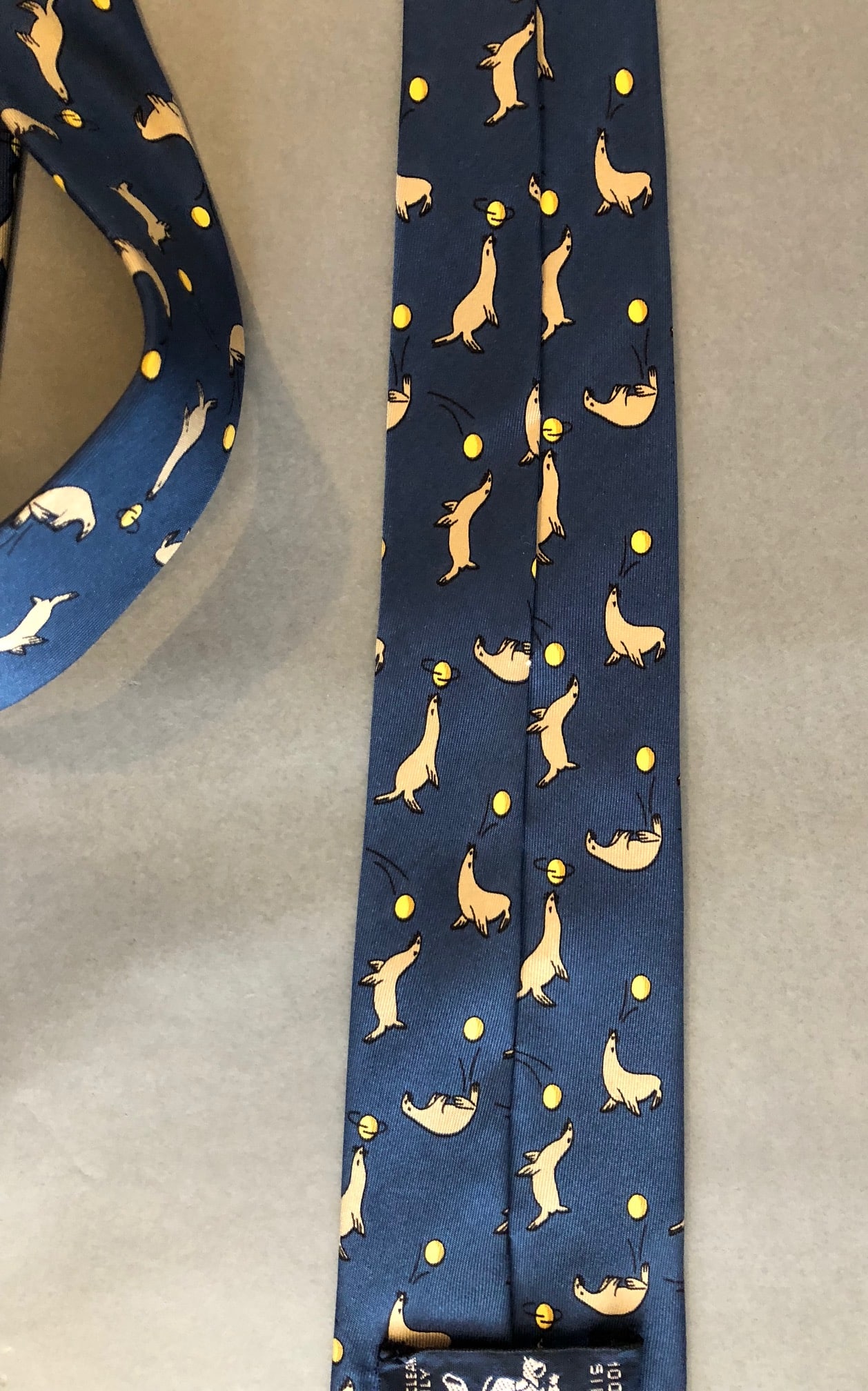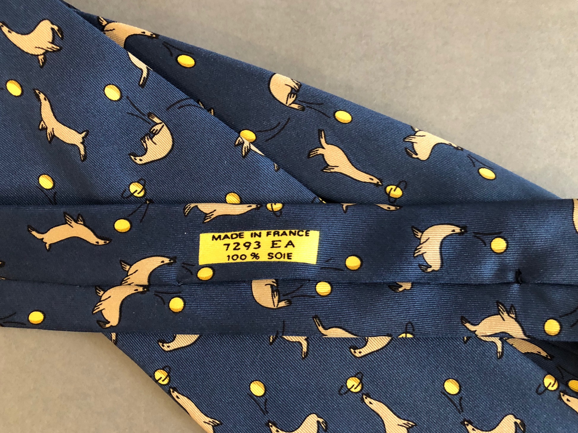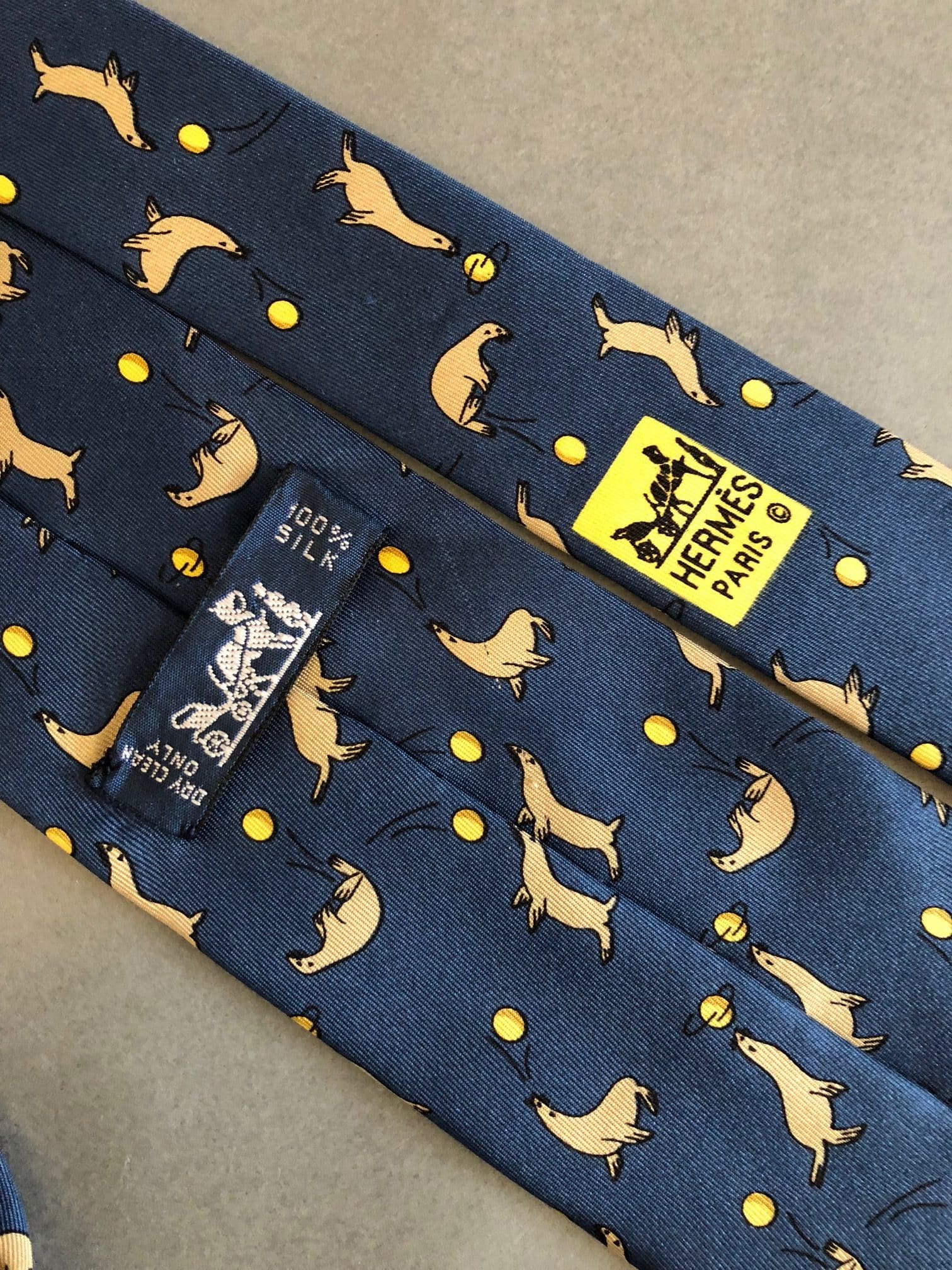 HERMES Blue Sea Lions Silk Tie