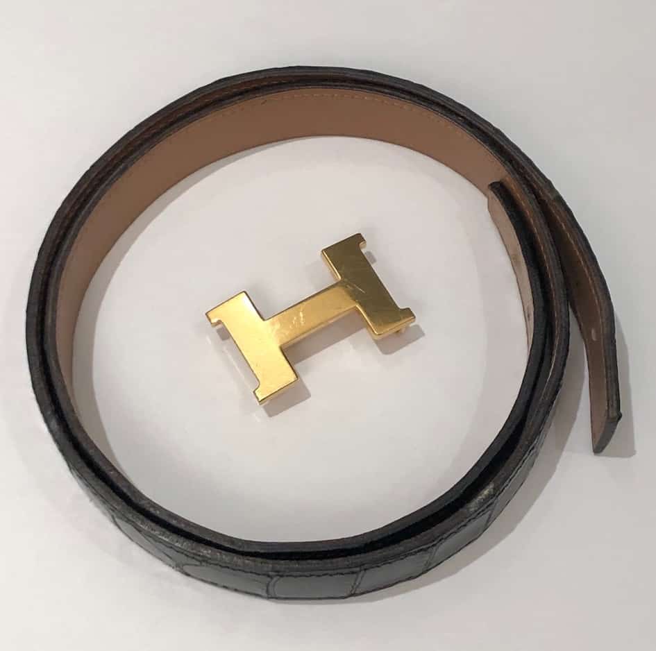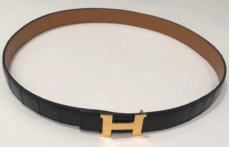 HERMÈS H Crocodile Constance Belt Black Vintage 1990s