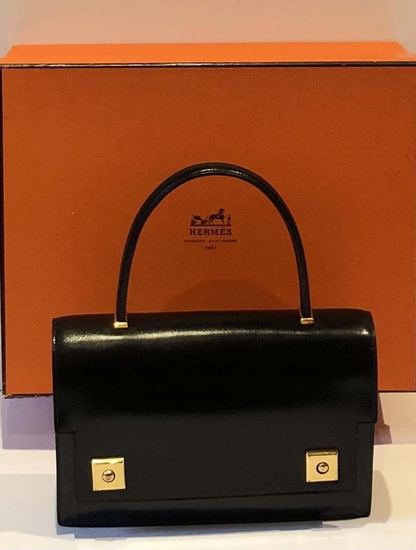 HERMÈS Piano Handbag Black Box Leather Vintage Circa 1960s W/Box