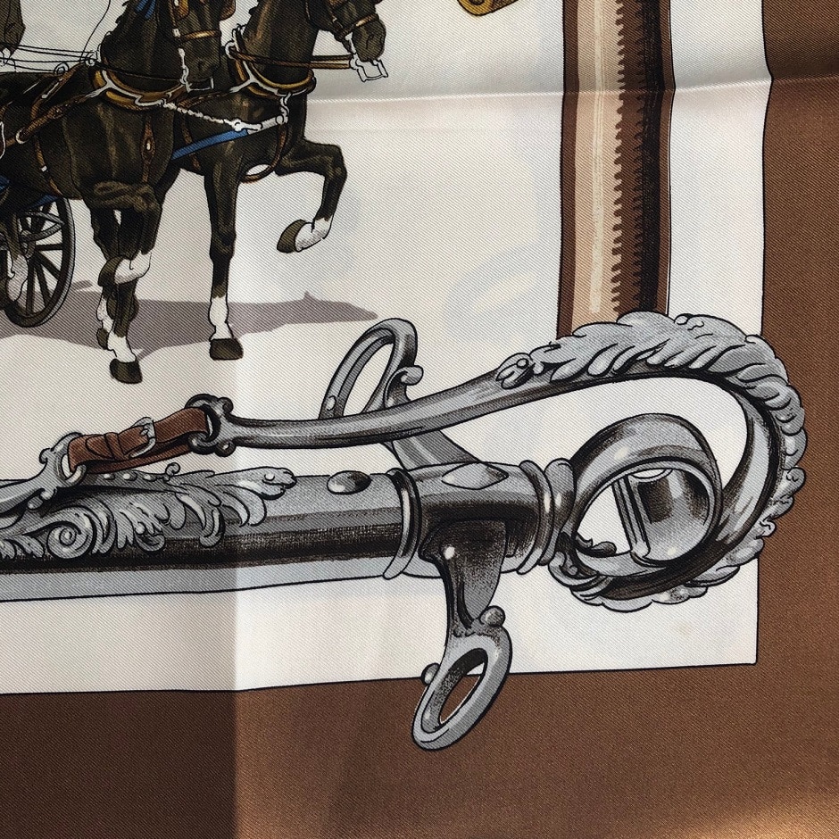 HERMÈS Scarf Equipages Vintage Silk Ledoux 1973 W/Box CVC18040422-09