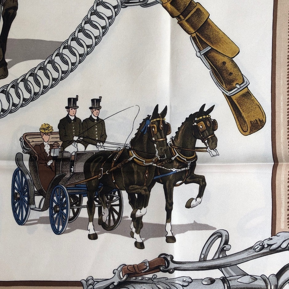 HERMÈS Scarf Equipages Vintage Silk Ledoux 1973 W/Box