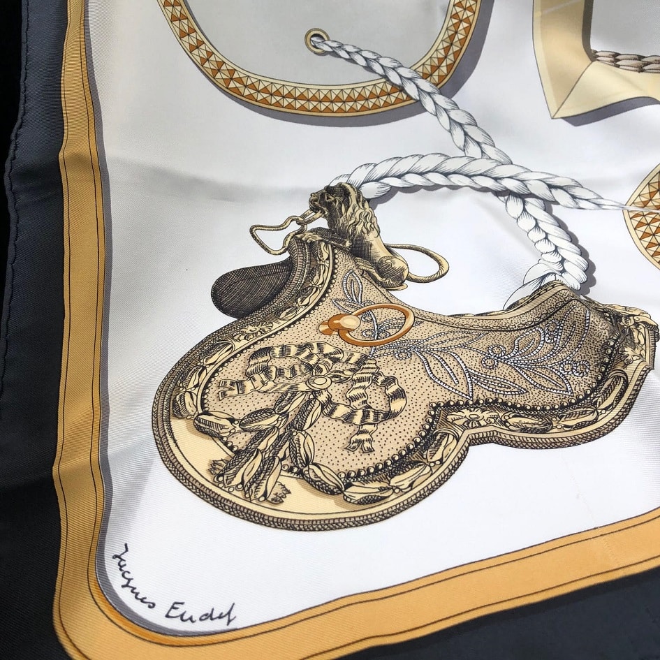 HERMÈS Scarf Grand Apparat Vintage Silk Jacques Eudel Black Gold Grey
