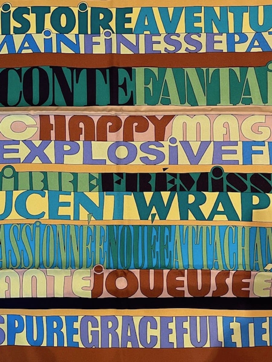 Some of her Scarf Catalog: Soie Libre (2009), Mots de Soie (2011), Brides et Gris-Gris (2014), Duo d’Etriers (2017), Zouaves et Dragons (2020), Fantaisies d’Etriers (2022)
