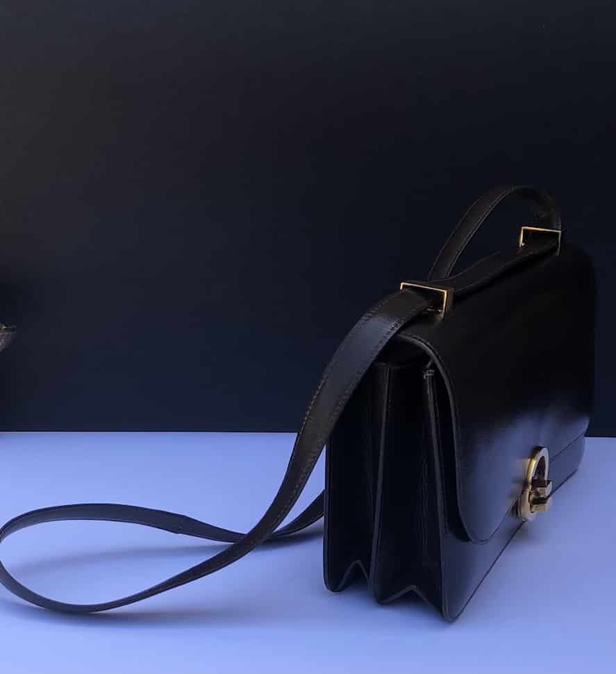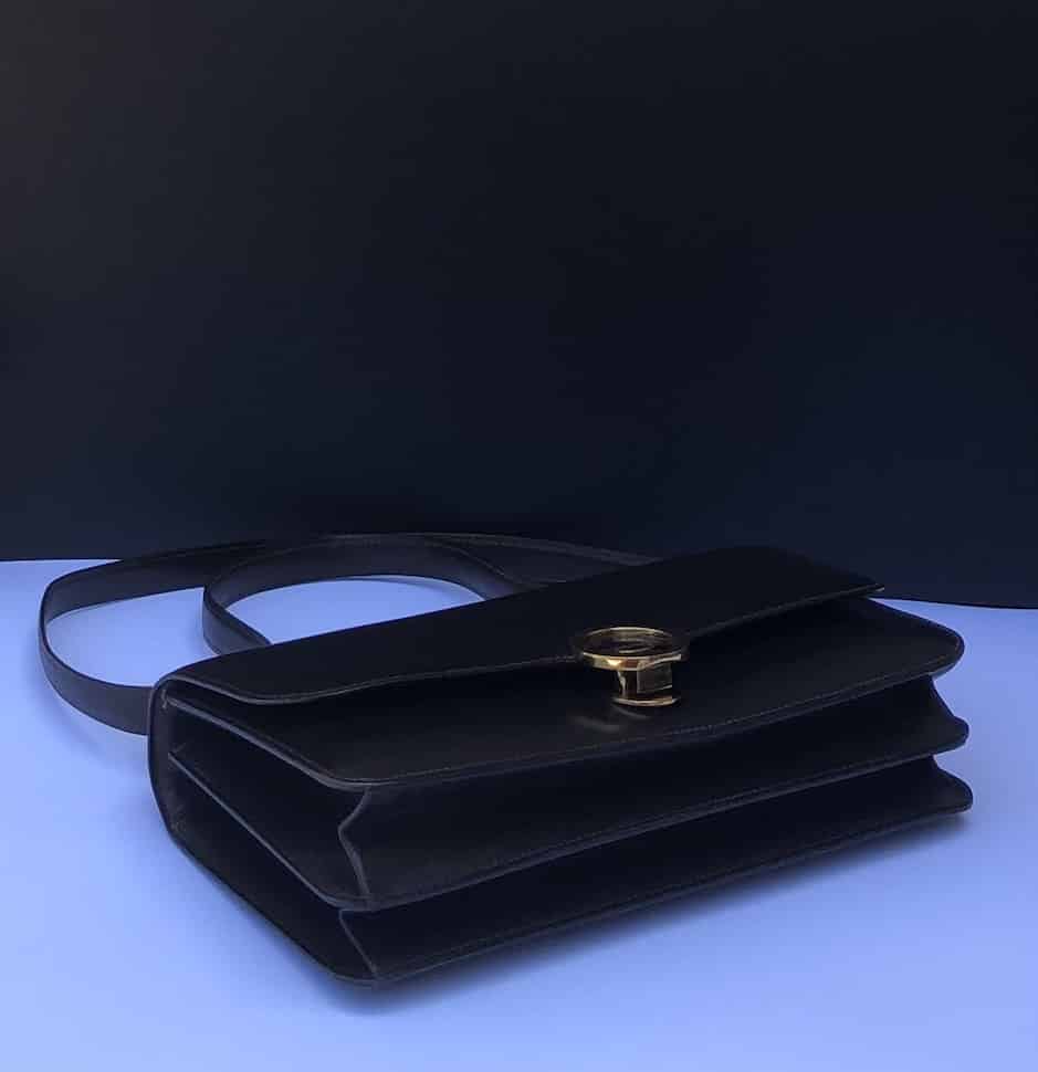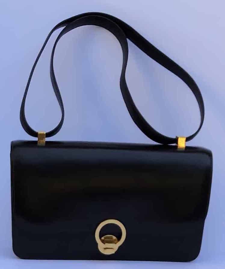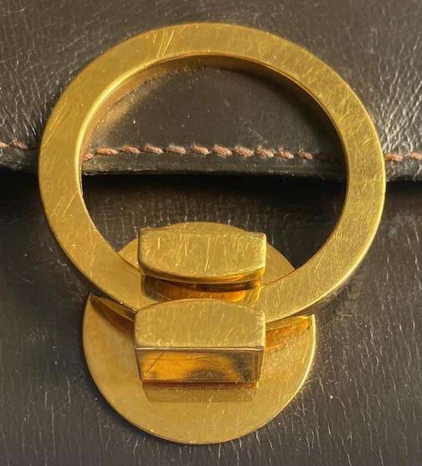 HERMÈS Vintage Box Calf Leather Ring Shoulder Bag 1975