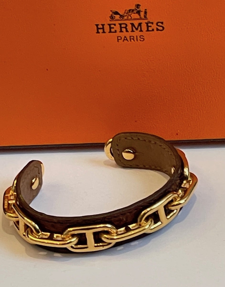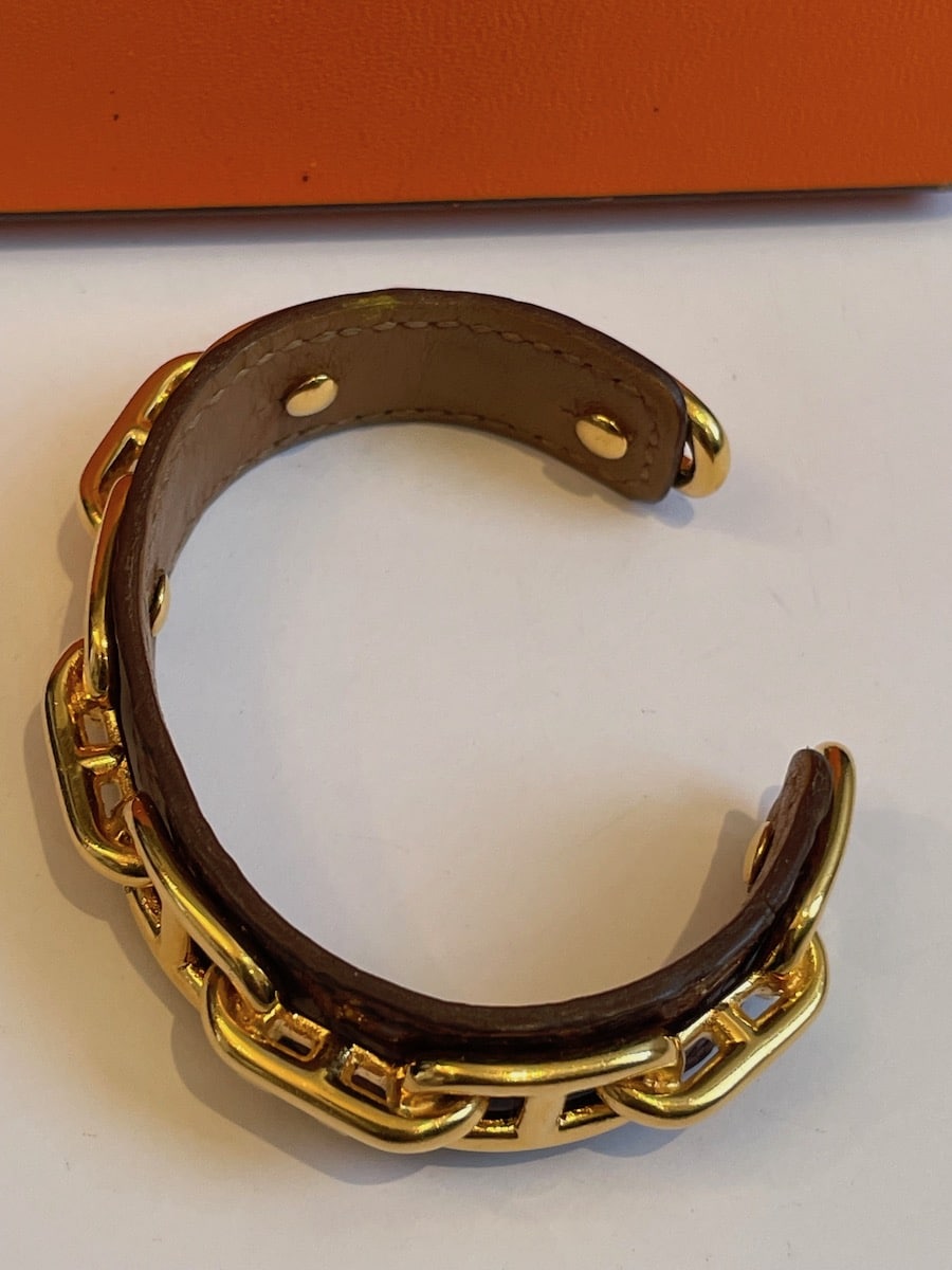 HERMÈS Vintage Chaine d’Ancre Cuff Bracelet Leather Crocodile
