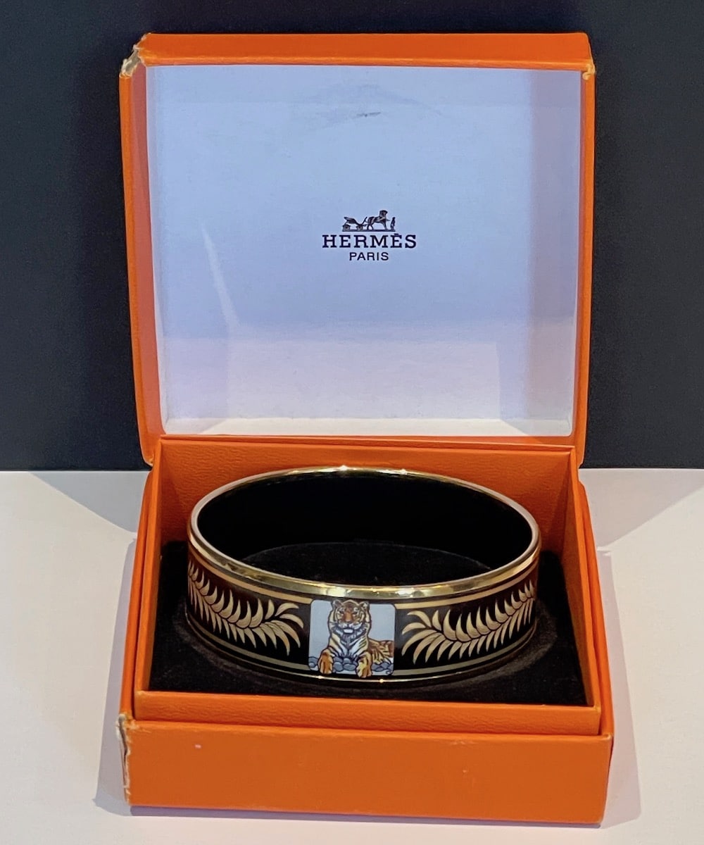 HERMÈS Vintage Large Bracelet “TIGRE ROYAL” 18K Gold Plated W/Box C.1970s