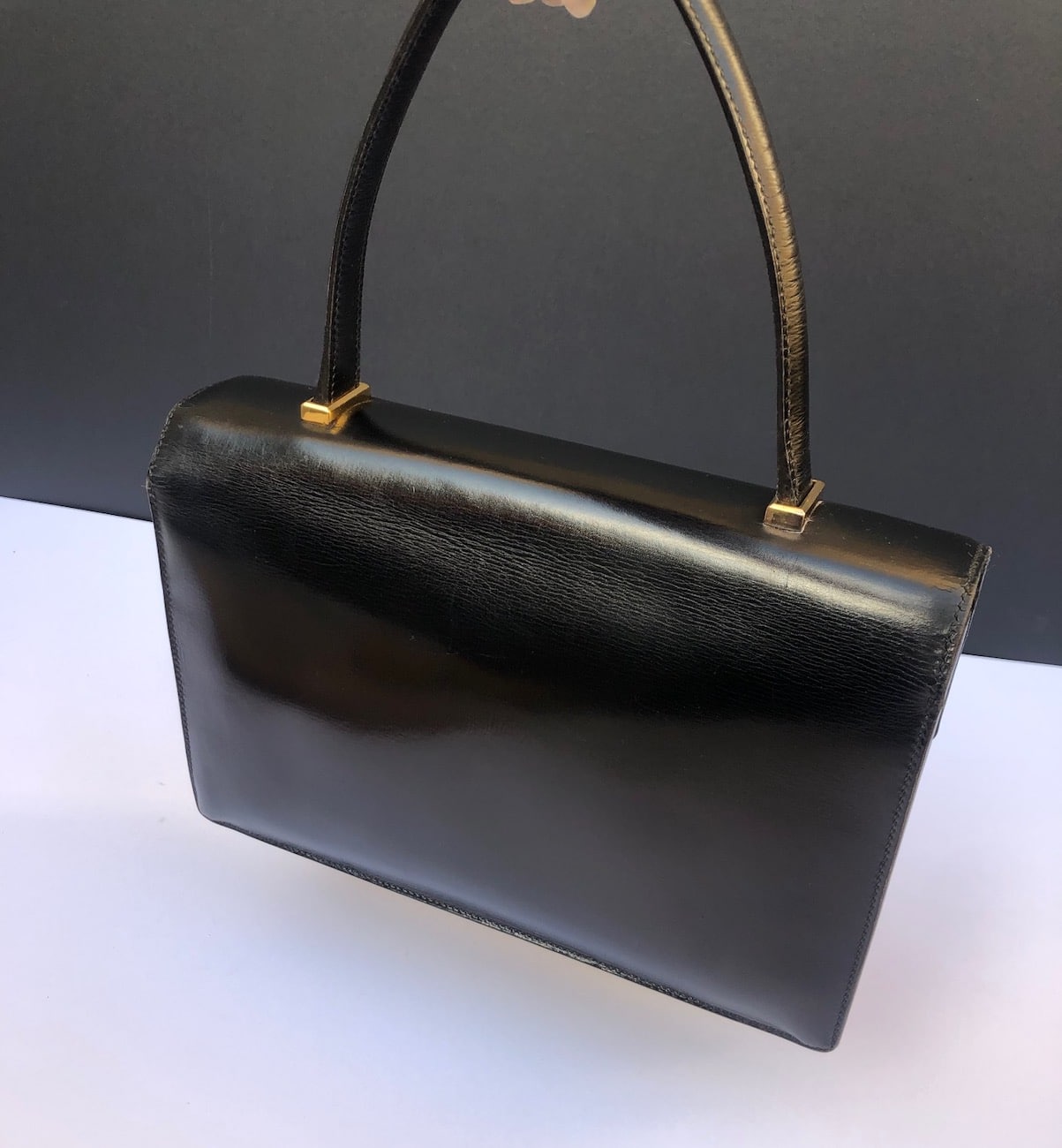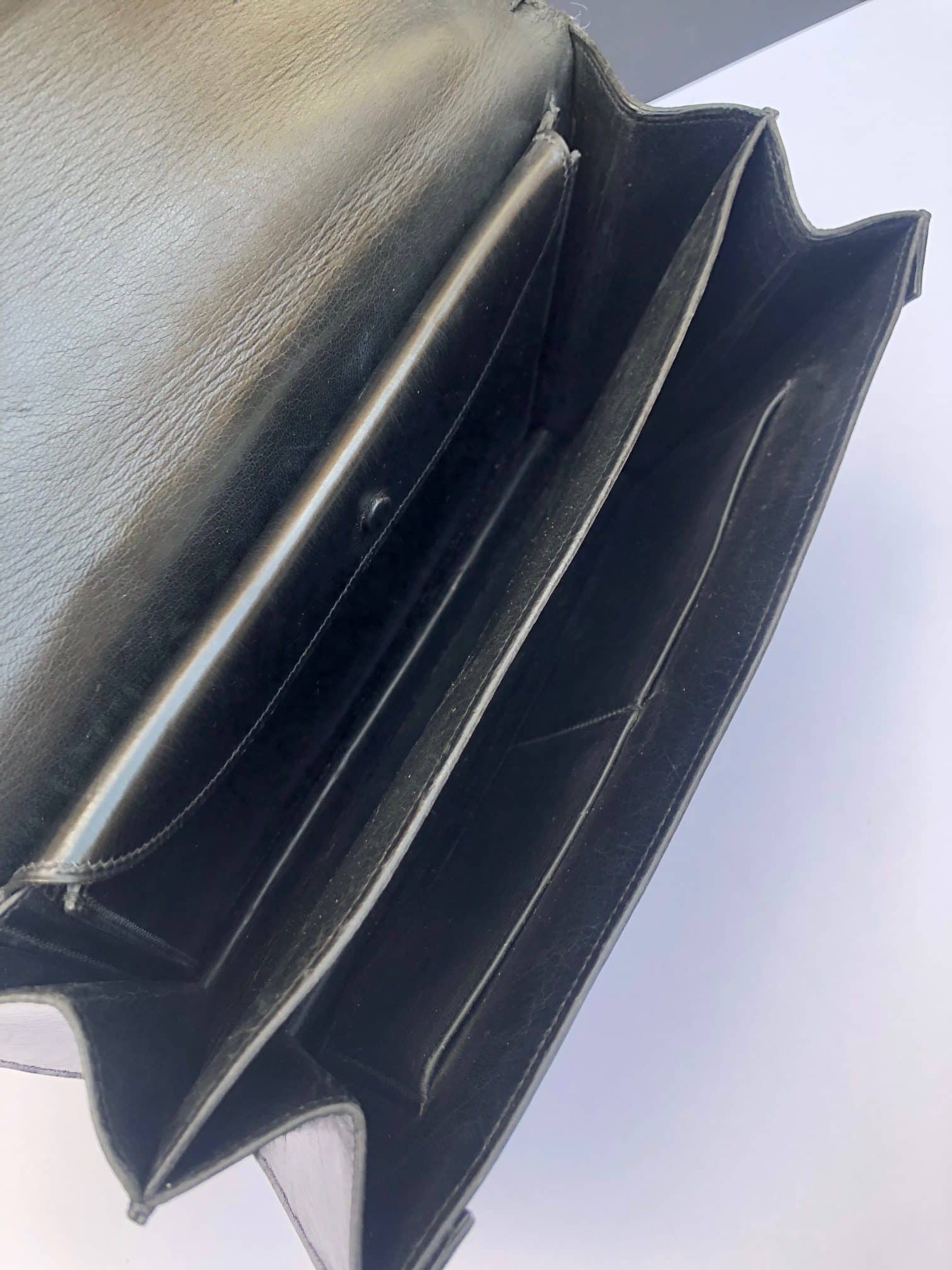 HERMÈS Vintage Piano Leather Black Box Calfskin Leather 1960 Piano Bag W/Box