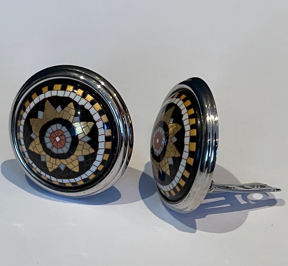 HERMÈS Vintage Round Mosaic Flower Earrings W/Box C.1990s