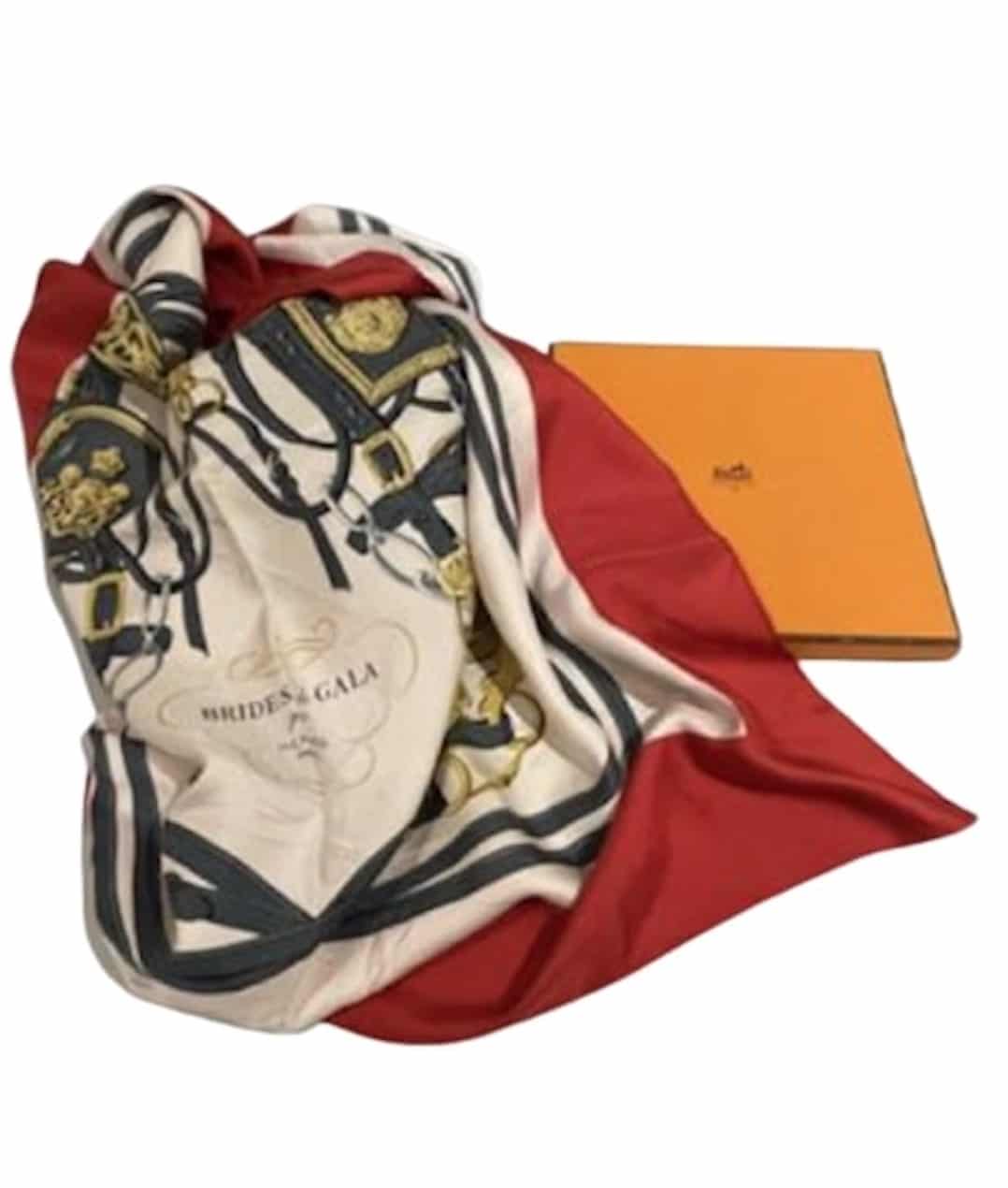 HERMÈS Vintage Silk Scarf Brides de Gala Red Grey Gold By Hugo Grygkar W/Box