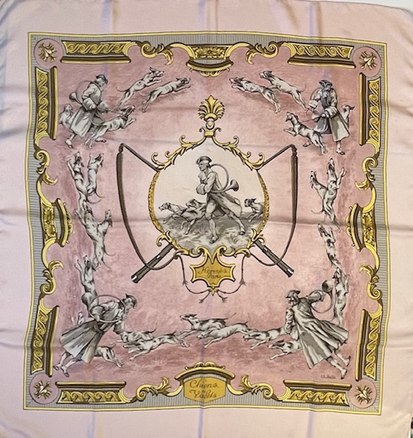 HERMÈS Vintage Silk Scarf Chiens Et Valets By Charles Hallo 1963 Collector W/Box