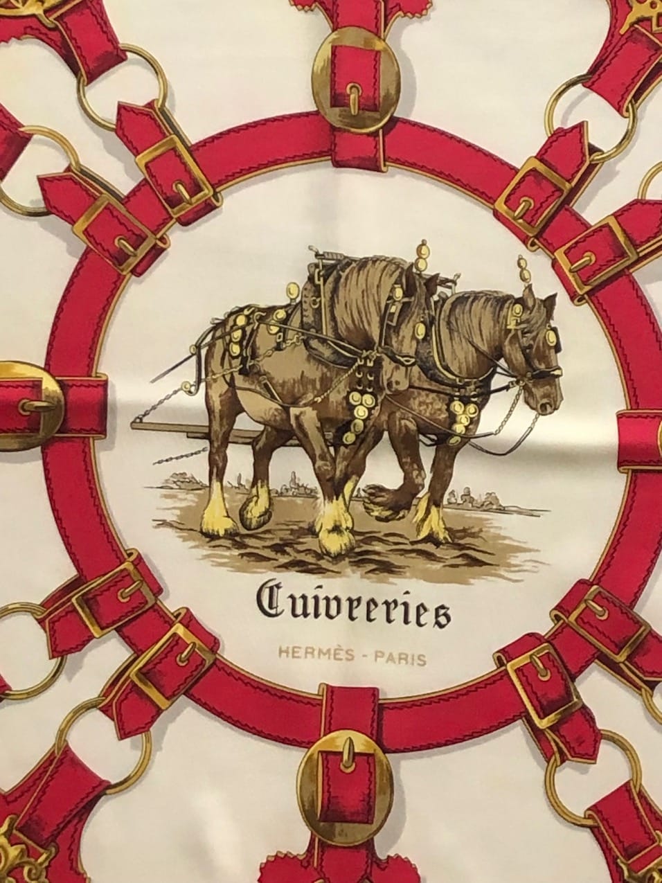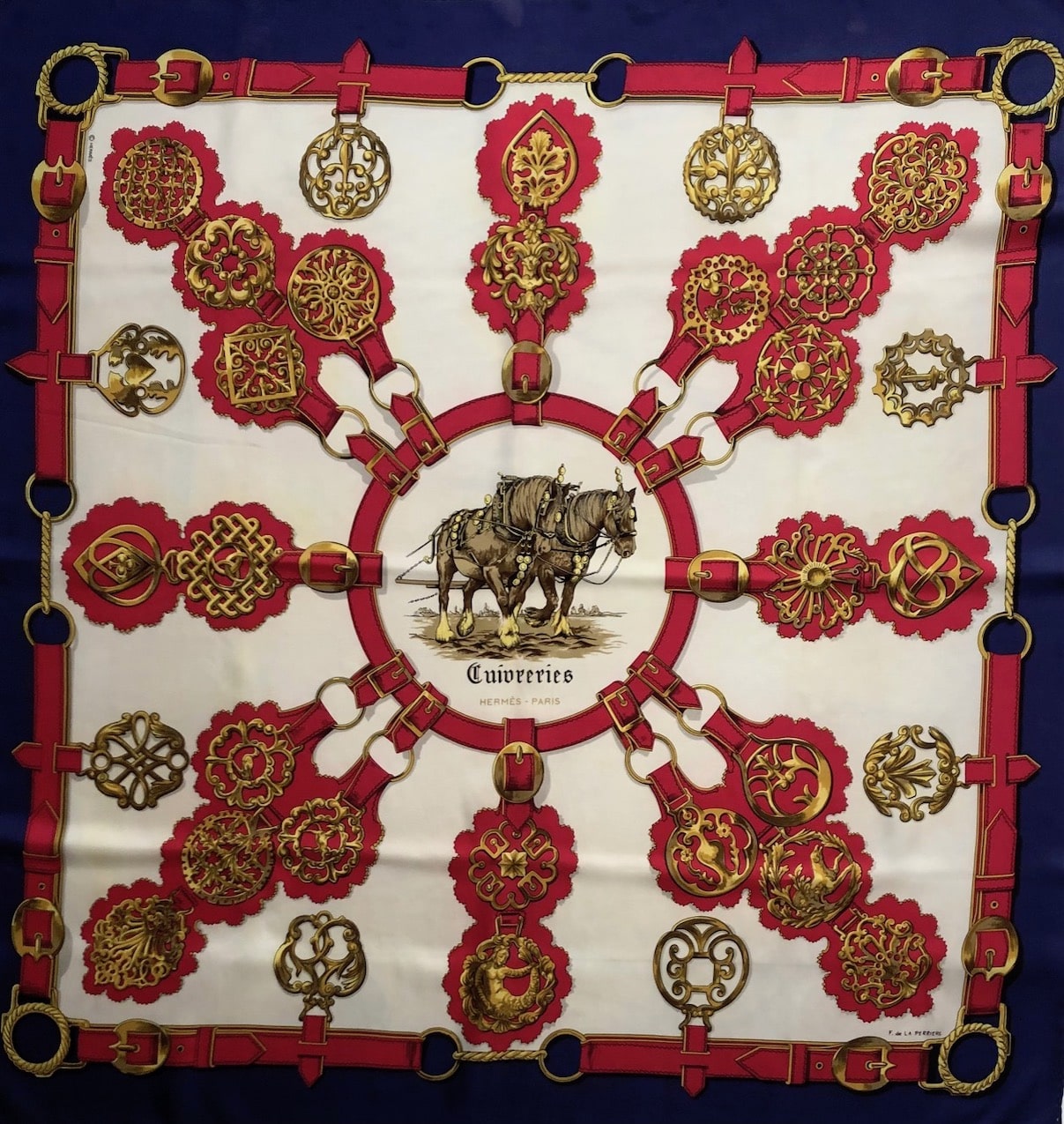 HERMÈS Vintage Silk Scarf Cuivreries Equestrian By Françoise De La Perrière W/Box