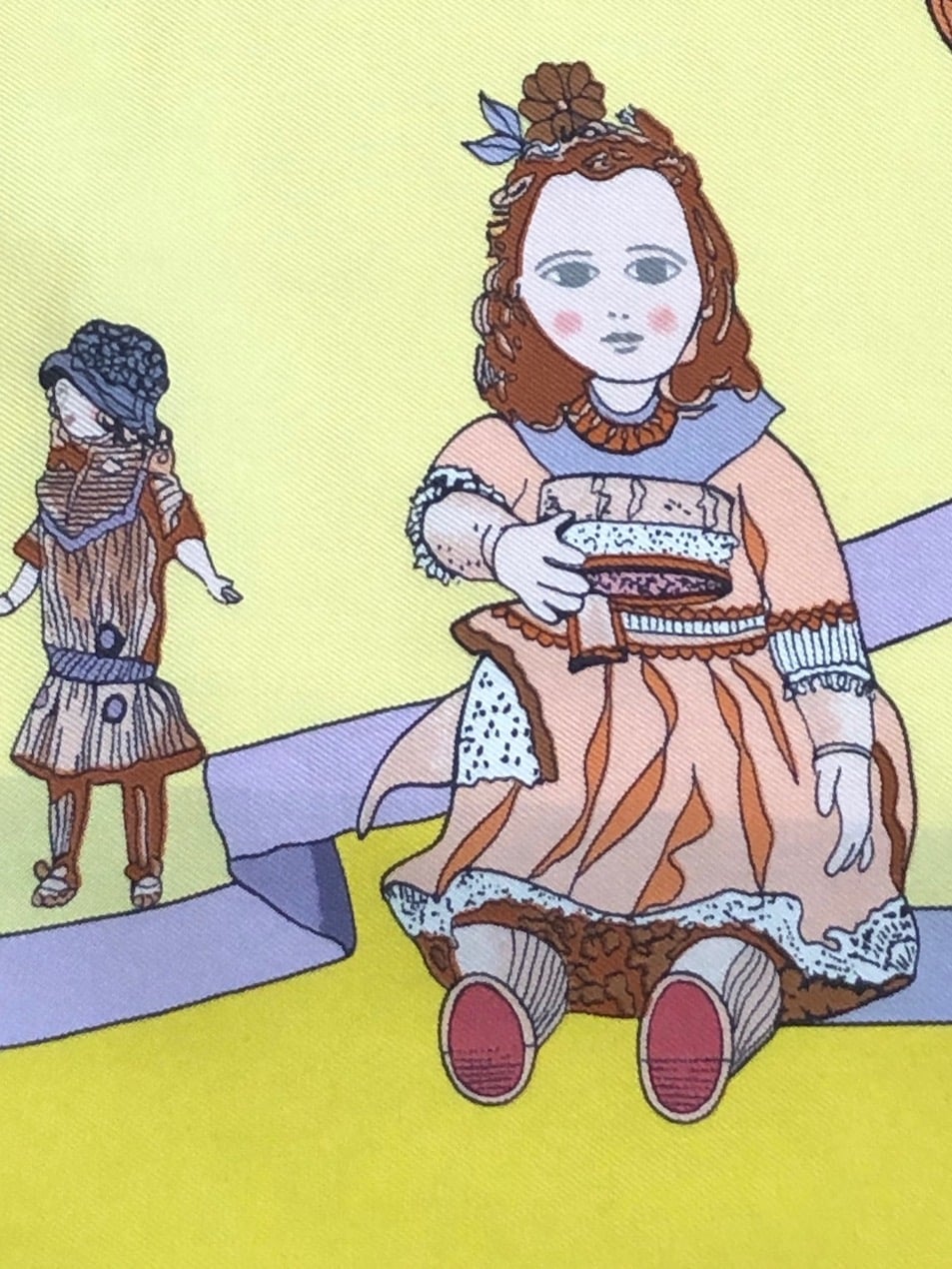Condition A: Vintage-Preowned, Circa 1990, in very good vintage condition. Signed HELLO DOLLY HERMÈS-PARIS © HERMÈS with designer name Loïc dubigeon. Made in France, delivered with a free used Hermès box-condition varied.