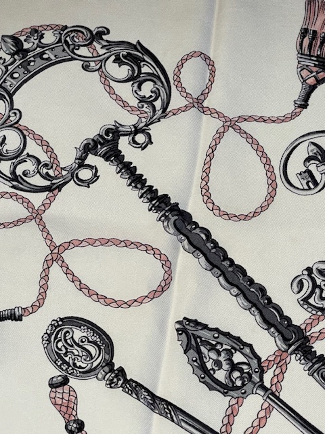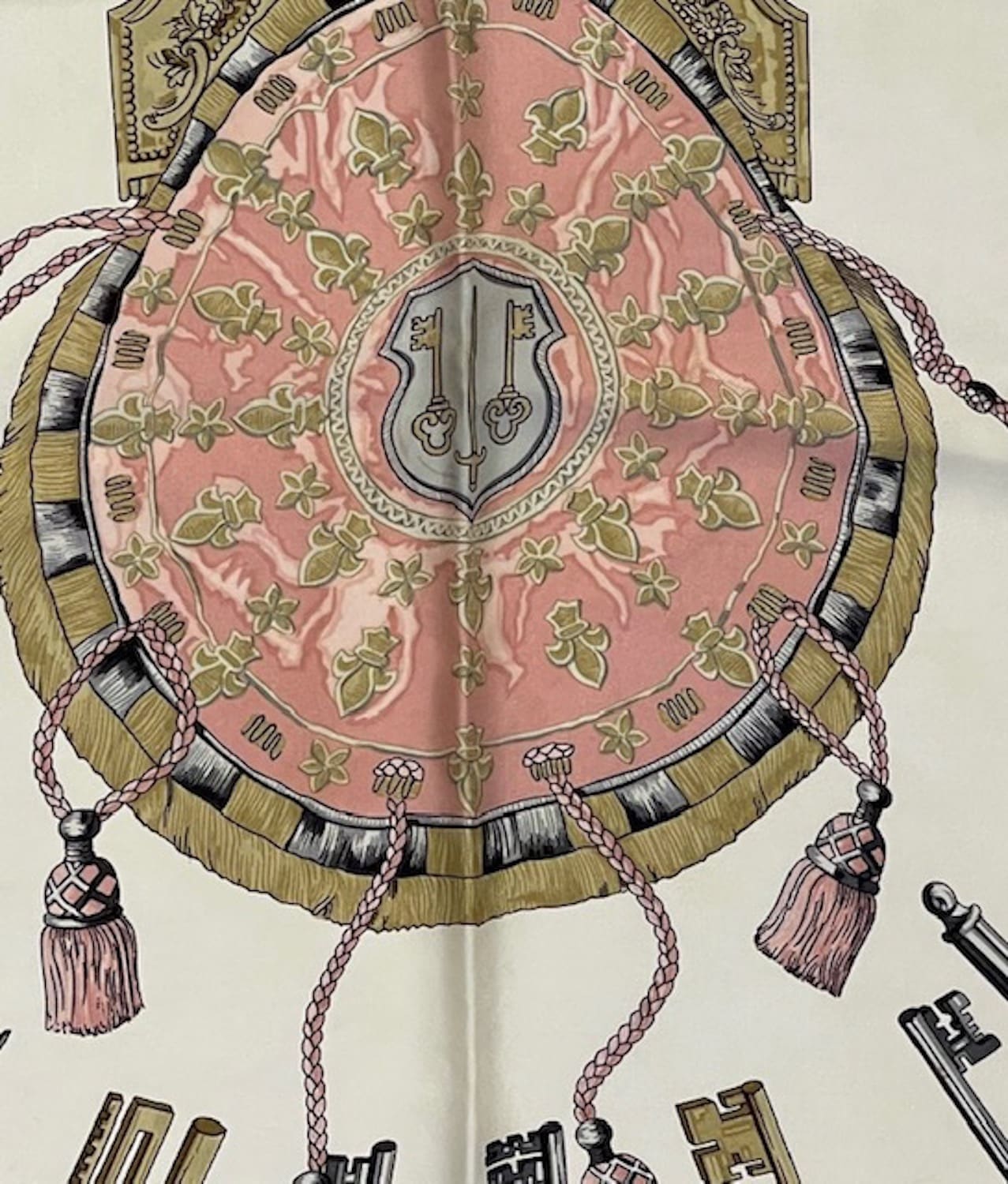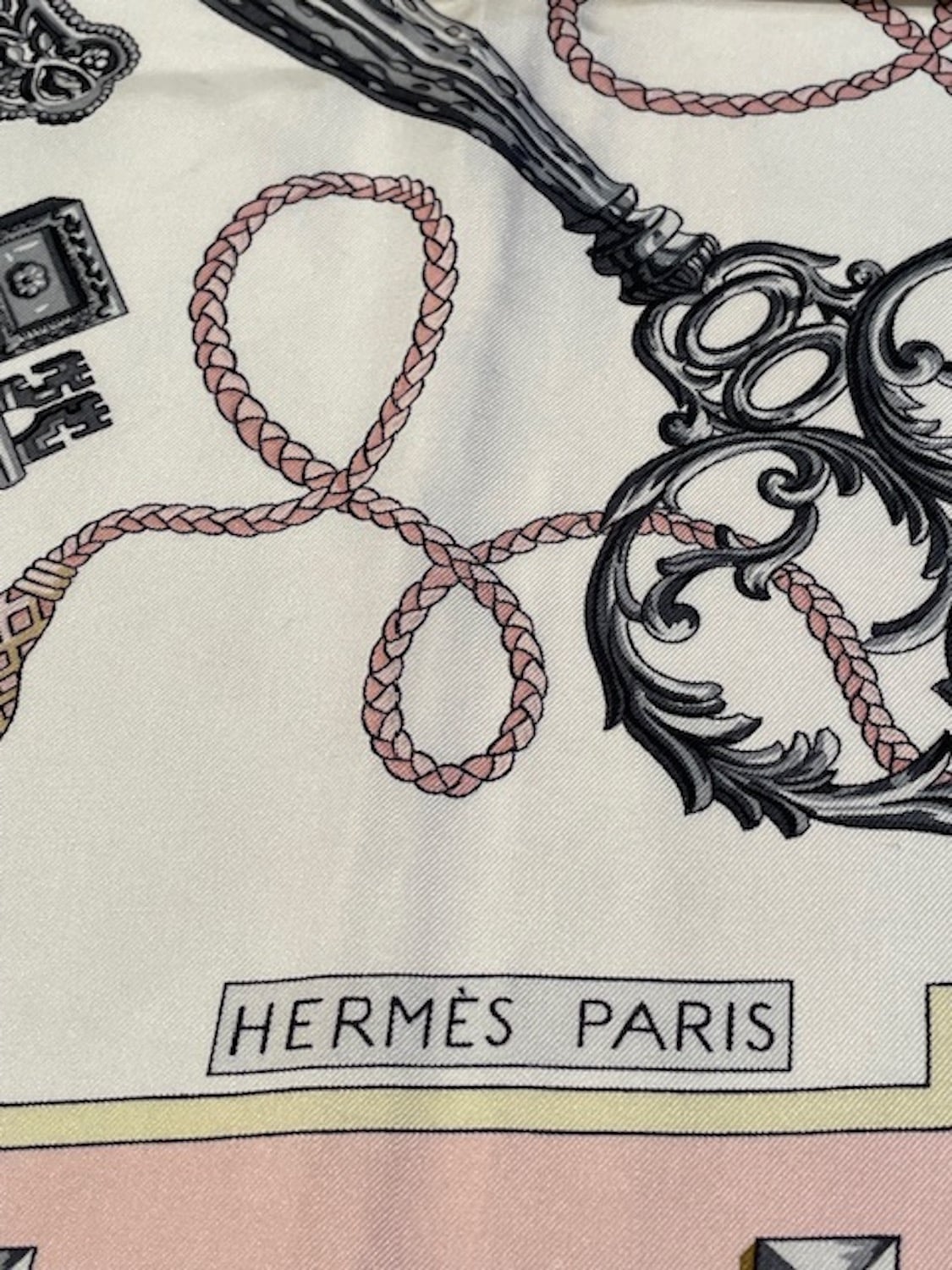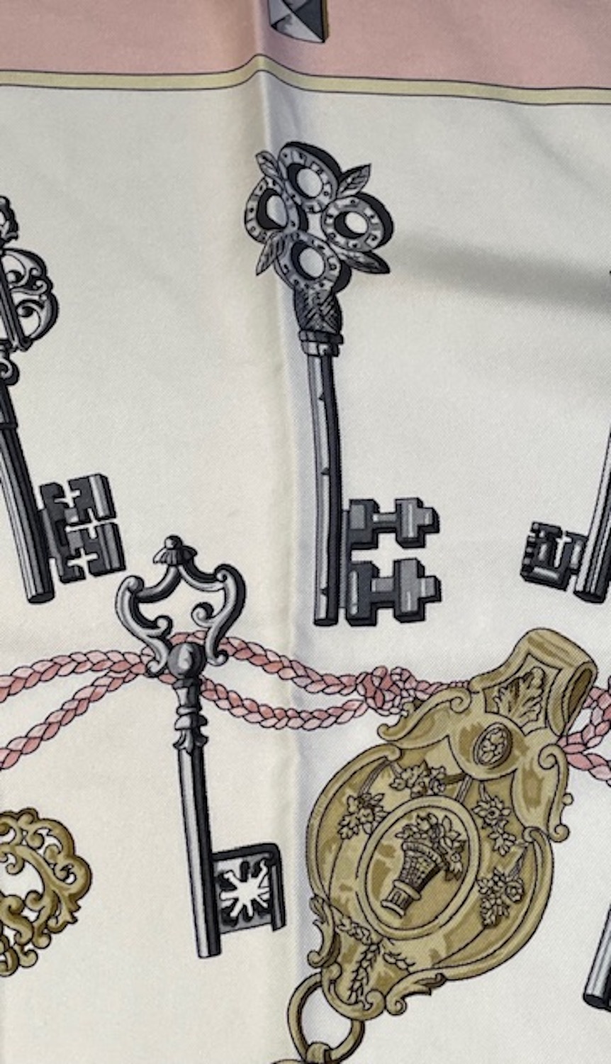 HERMÈS Vintage Silk Scarf Les Clefs By Caty Latham Pink Gold 1965 W/Box