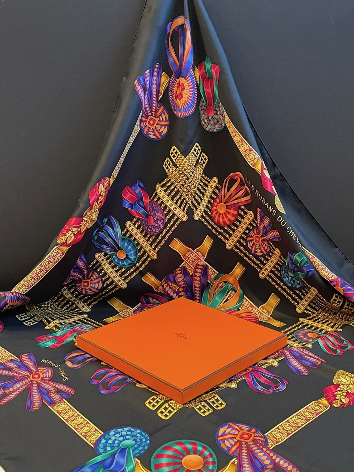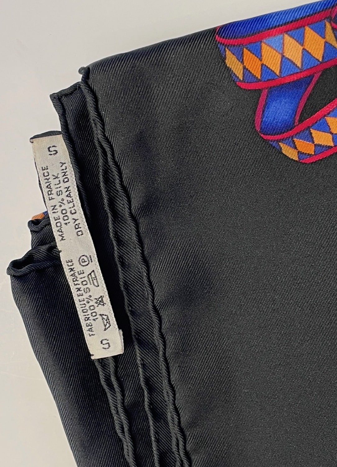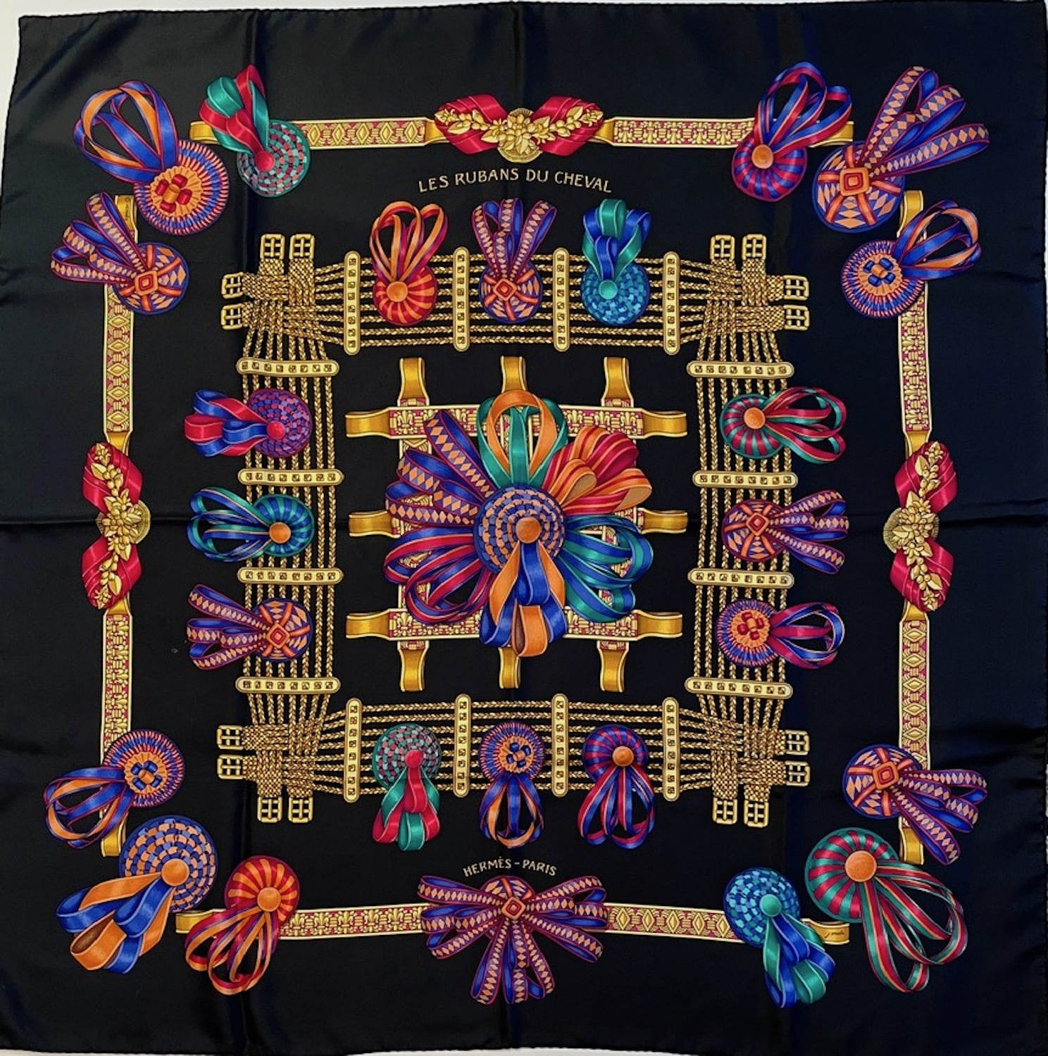 HERMÈS Vintage Silk Scarf Les Rubans Du Cheval Black Multi By Joachim Metz 1993 W/Box