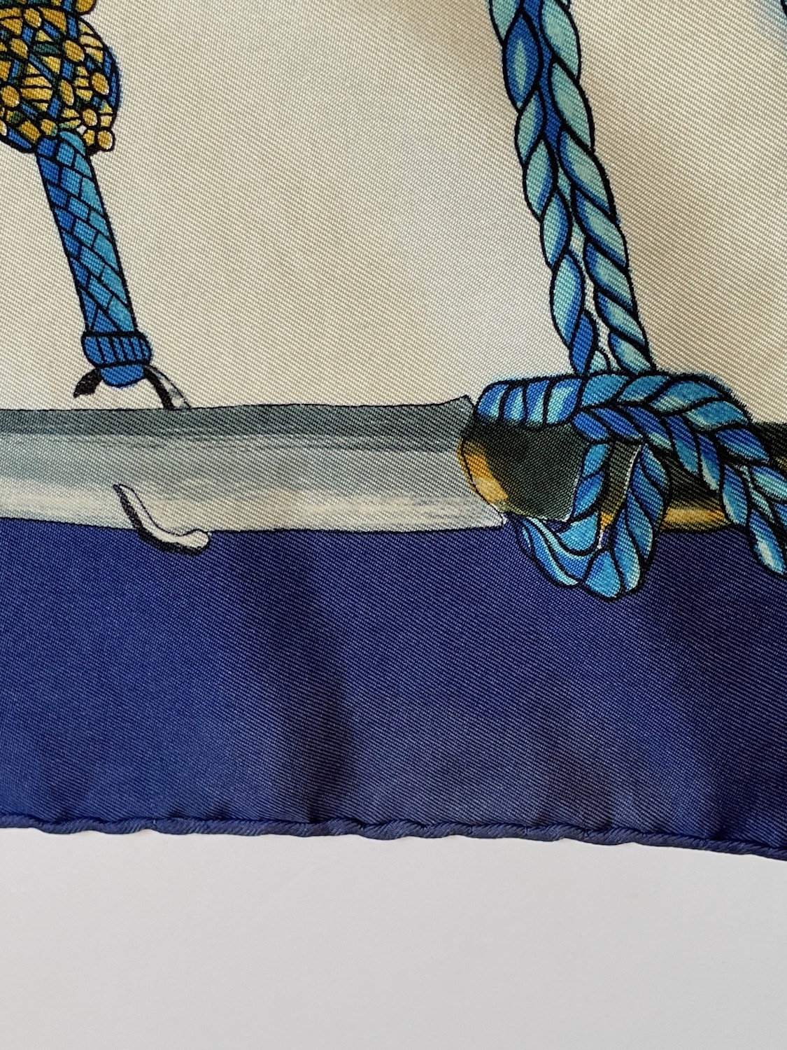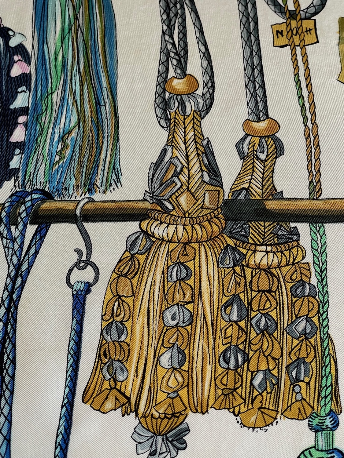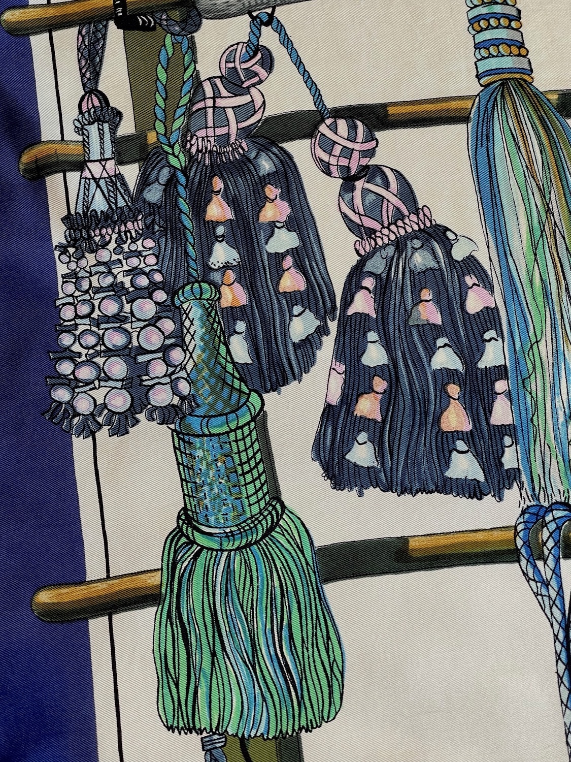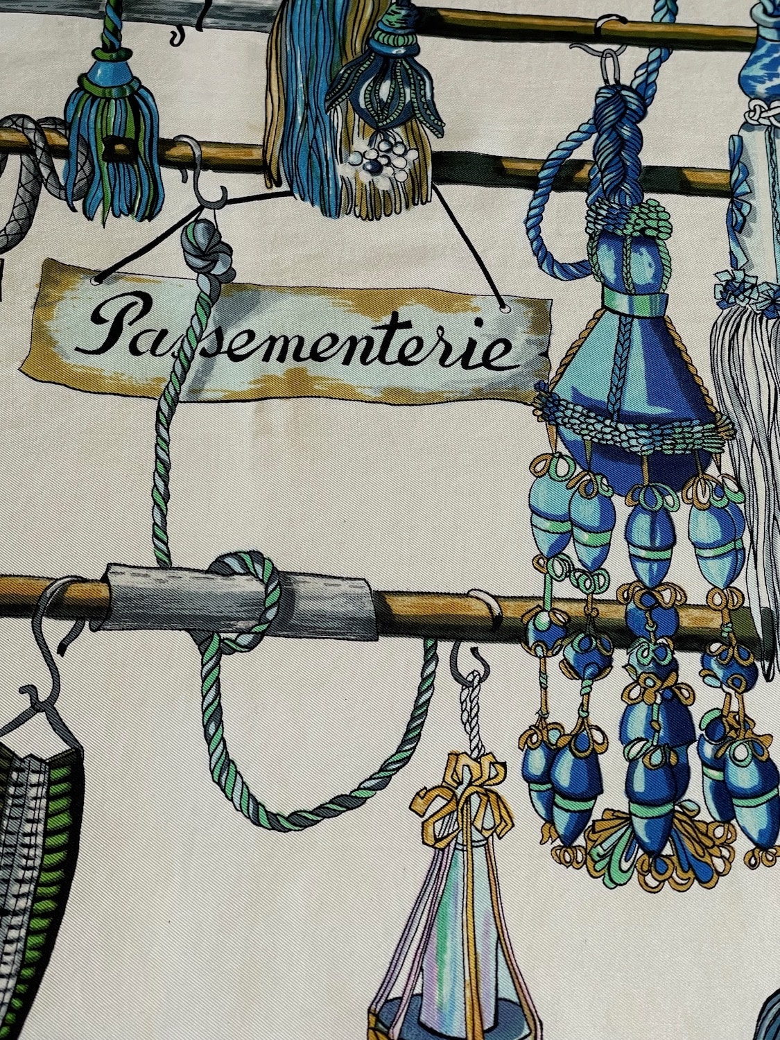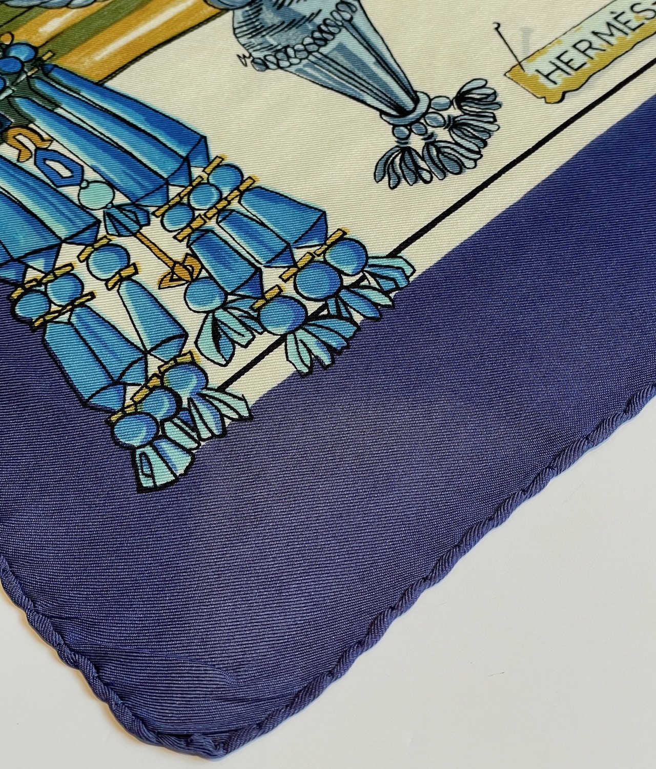 HERMÈS Vintage Silk Scarf PASSEMENTERIE Blue By Françoise Héron 1960 W/Box