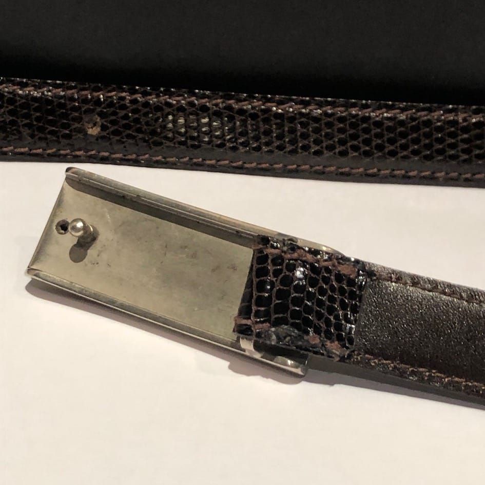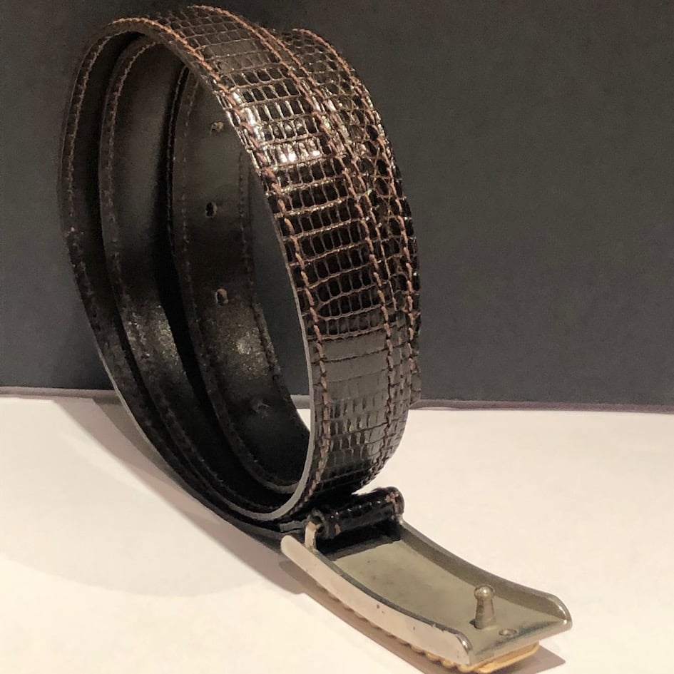 LANCEL Belt Vintage Brown Lizard Rectangular Double Buckle 90s