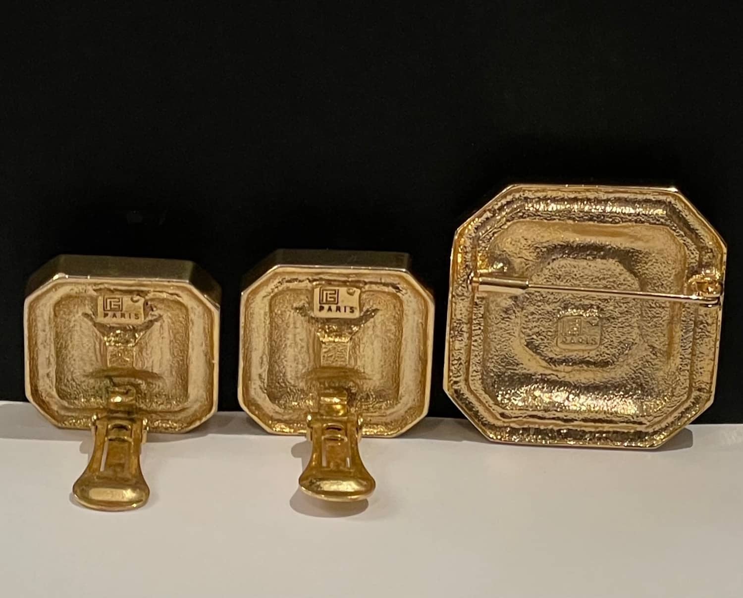 CELINE PARIS Vintage Gold Toned Celestial Sphere Clip-On Earrings C.1980s