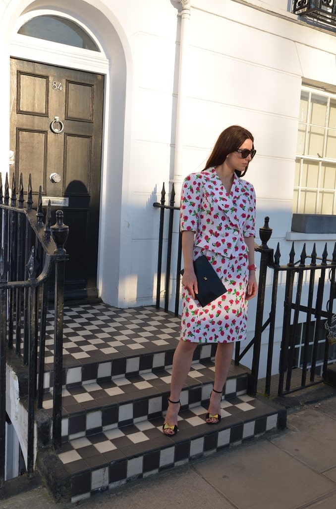 The GUY LAROCHE vintage suit and the HERMES Rio Clutch Pochette in the photos are available for sale under CLOTHING and HANDBAGS.
