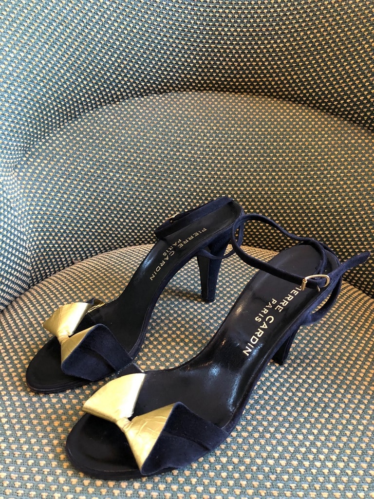 Simple, sophisticated and timeless sandal heels from Pierre Cardin. Featuring a front strap with gold Lily flower, almond toe shape, a high heel with ankle strap. This timeless is made for all-occasion wear.