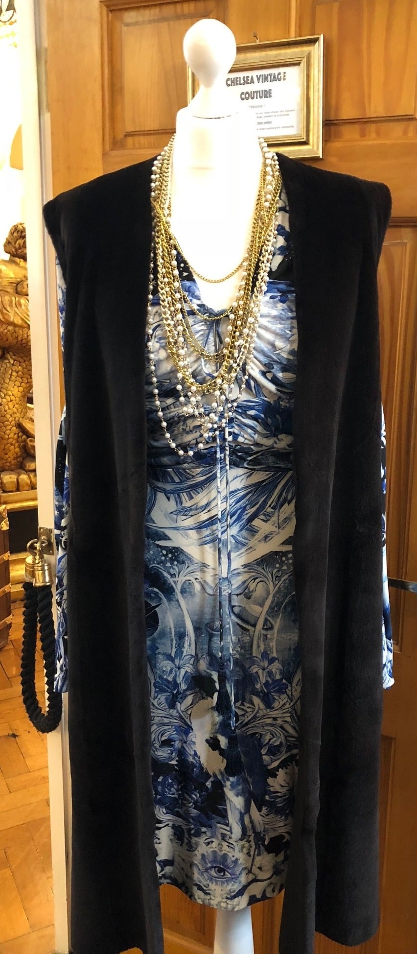 The fur coat mink longline gilet displayed on the photos is for sale under Hermès