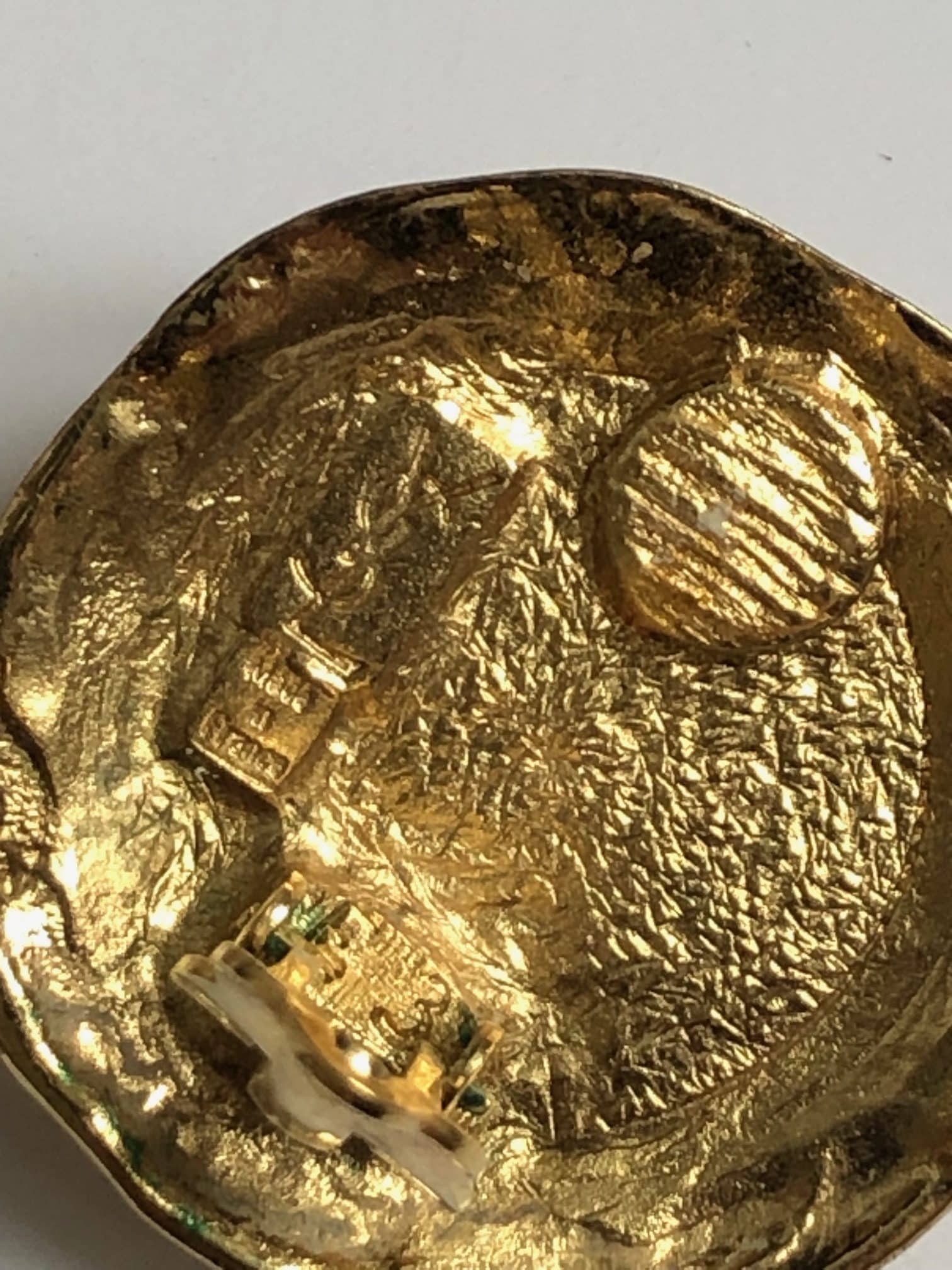YVES SAINT-LAURENT Vintage Large Drop Brooch Pendant Gold Hammered Circa 1980