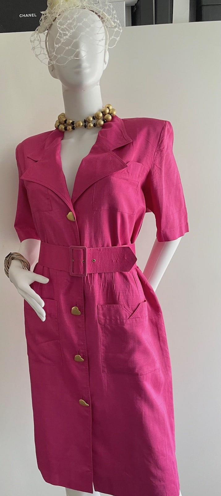 TORRENTE Miss Torrente Pink Silk Belted Heart Jewel Buttons Dress C.1980s