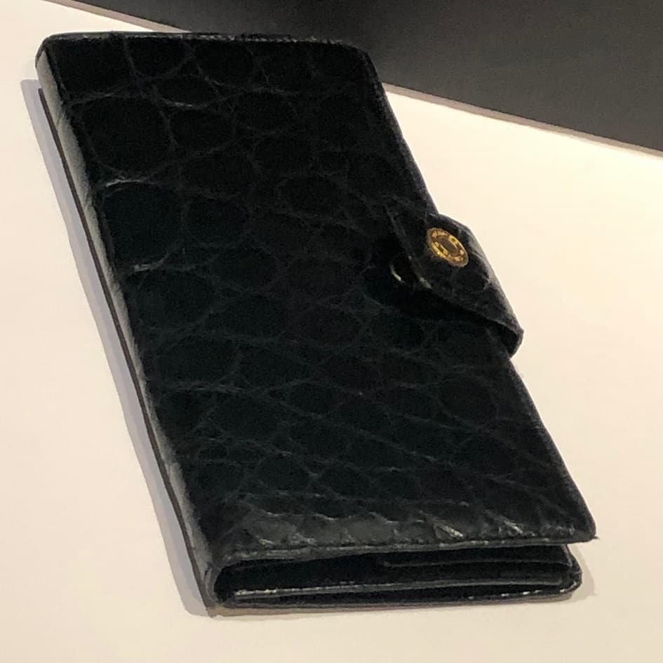 Vintage Wallet Purse Black Croc Hermès Stud Button Circa 70-80s