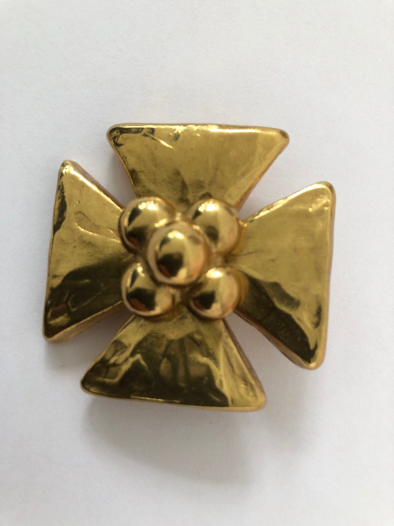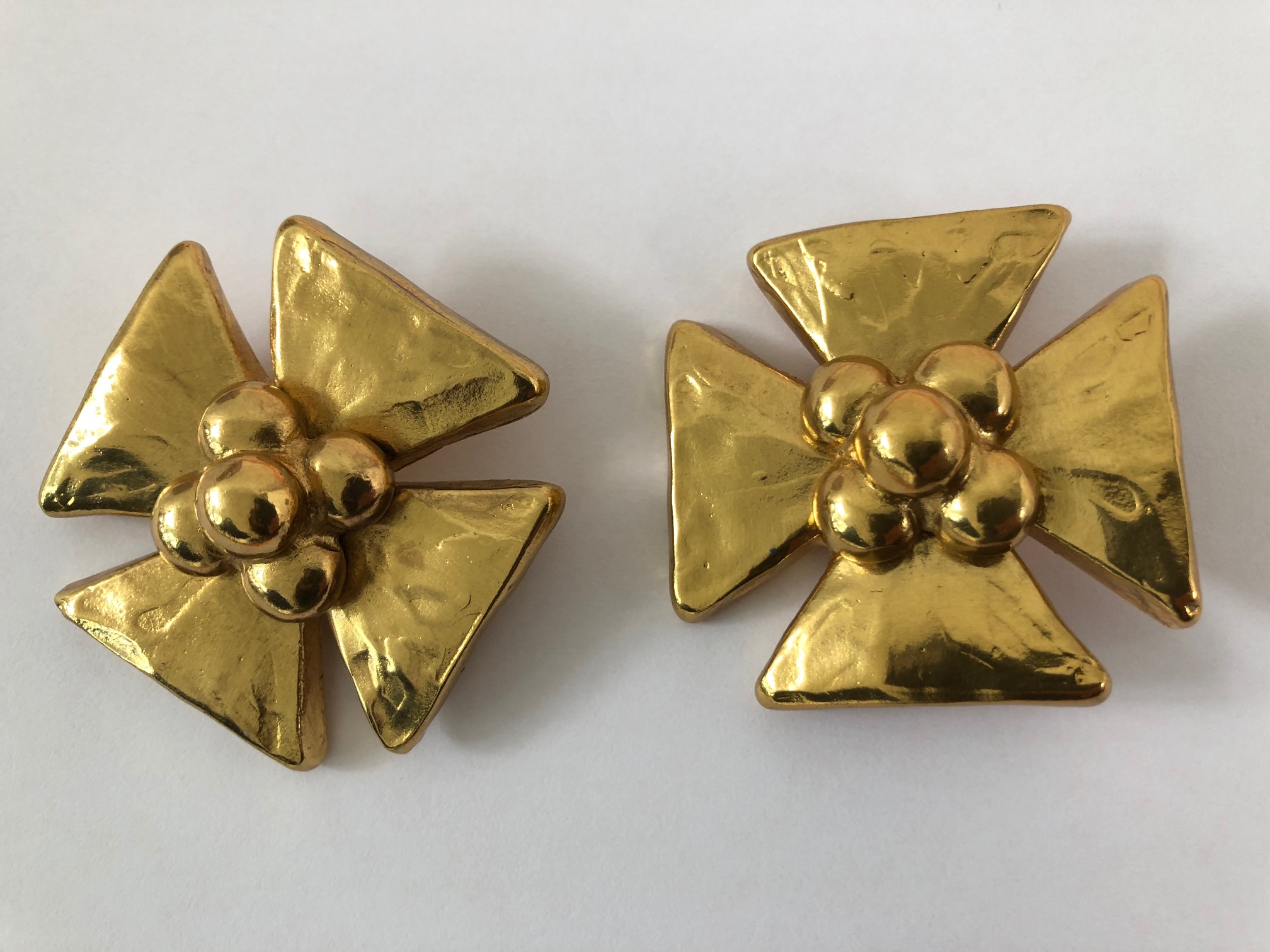 Beautiful Yves Saint-Laurent, vintage, 80s large clip-on cross earrings, gold toned metal.