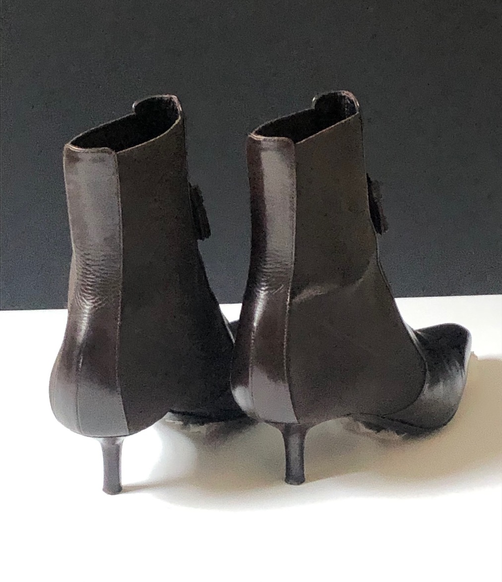YVES SAINT-LAURENT Ankle Boots Chocolate Leather Stretch 35.5