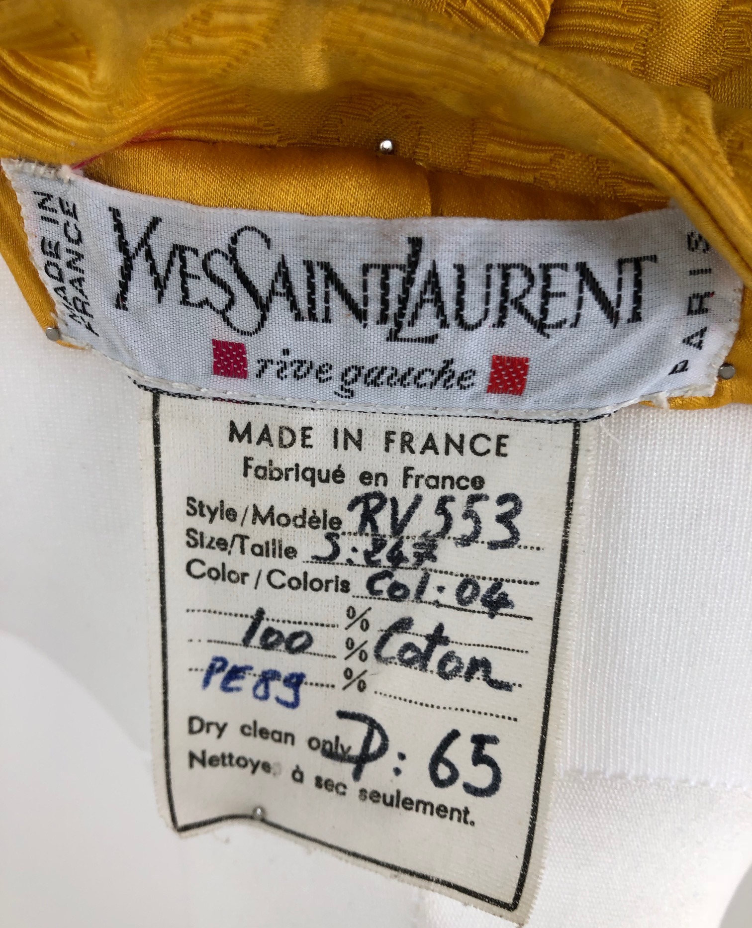 Condition A-: Vintage-Preowned, excellent condition, a minor trace of use on the inside of the collar. Yves Saint-Laurent Rive Gauche acronym with composition label, 100% cotton, lined, made in France