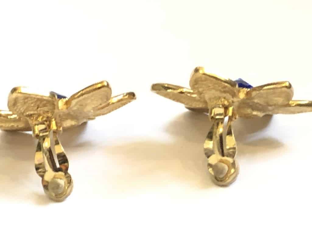 YVES SAINT-LAURENT Flower Blue Cabochon Earrings Vintage 1980’s