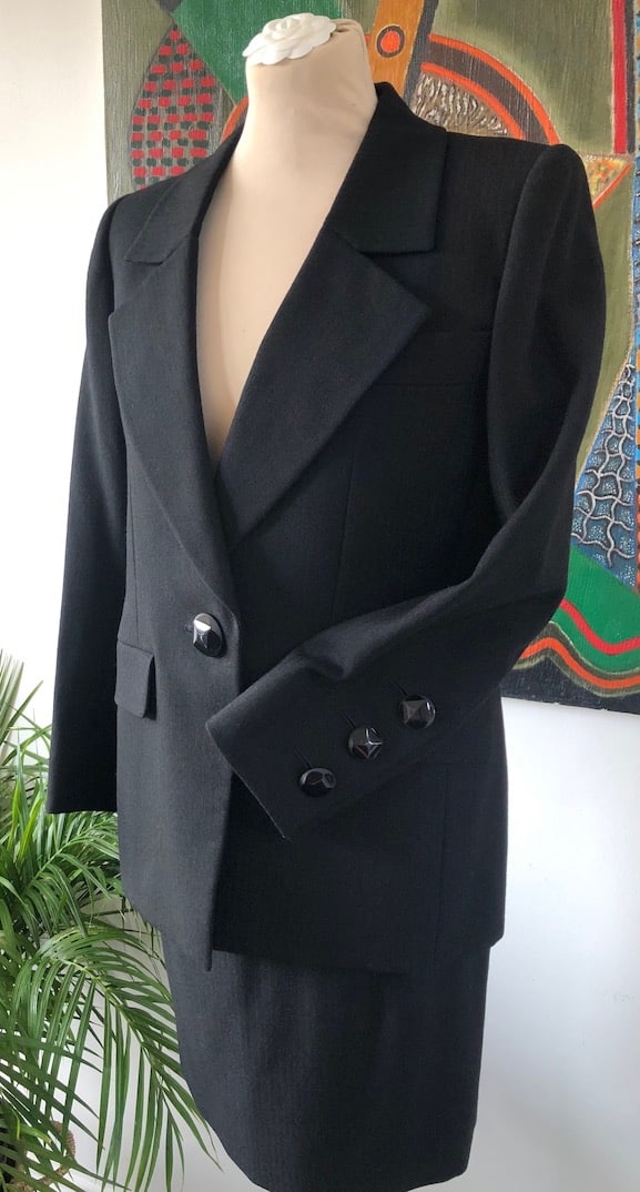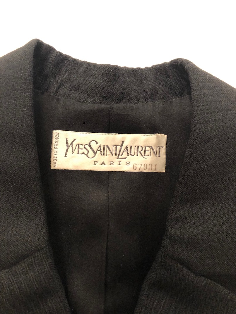 YVES SAINT-LAURENT Haute Couture 67931 Black Single Breasted Pin Stripe Jacket 3 Pc Suit Vintage