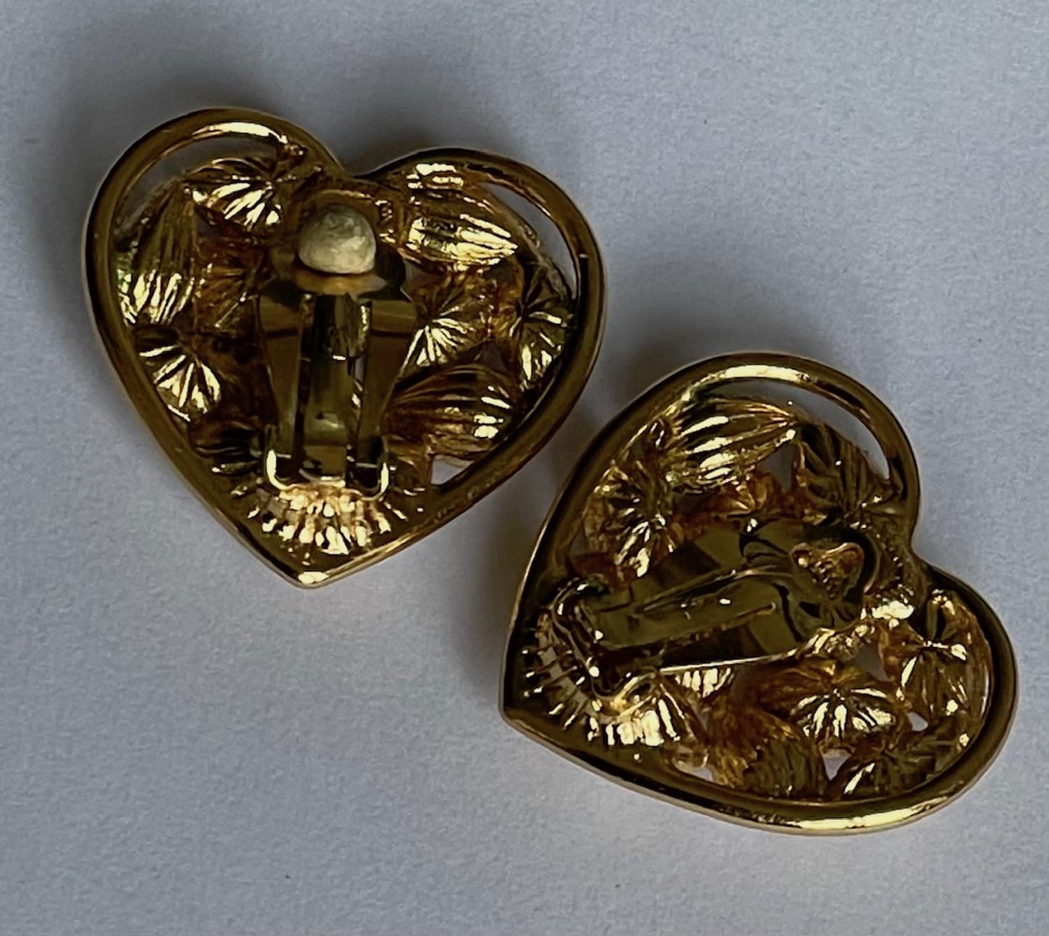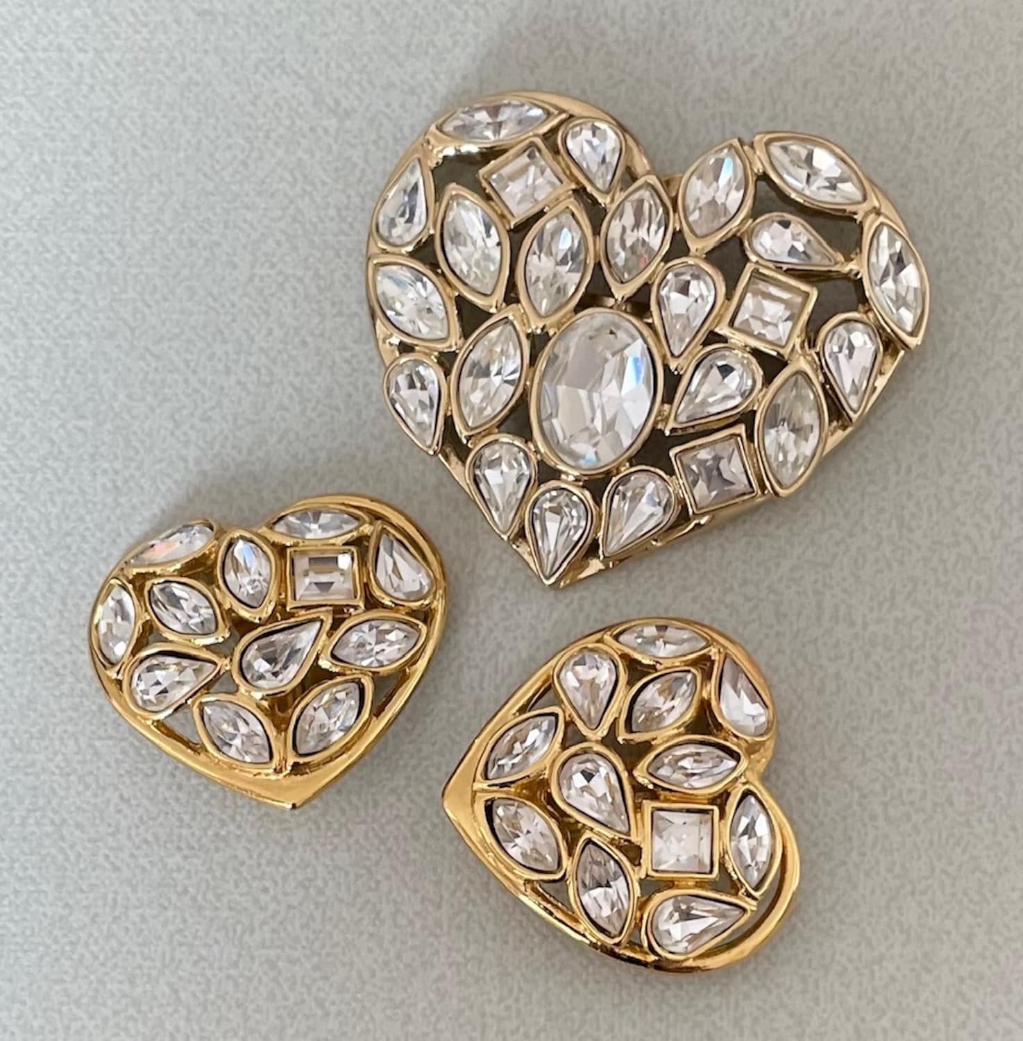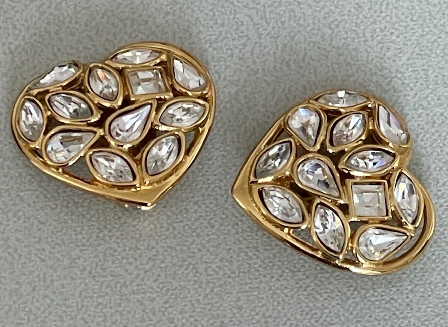 YVES SAINT LAURENT Heart-Shaped Earrings Gilded Diamenté Haute Couture By Robert Goossens 1983