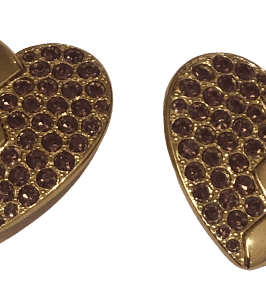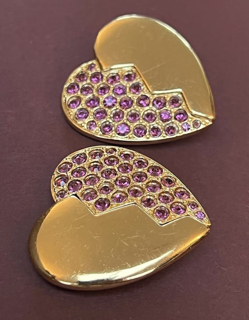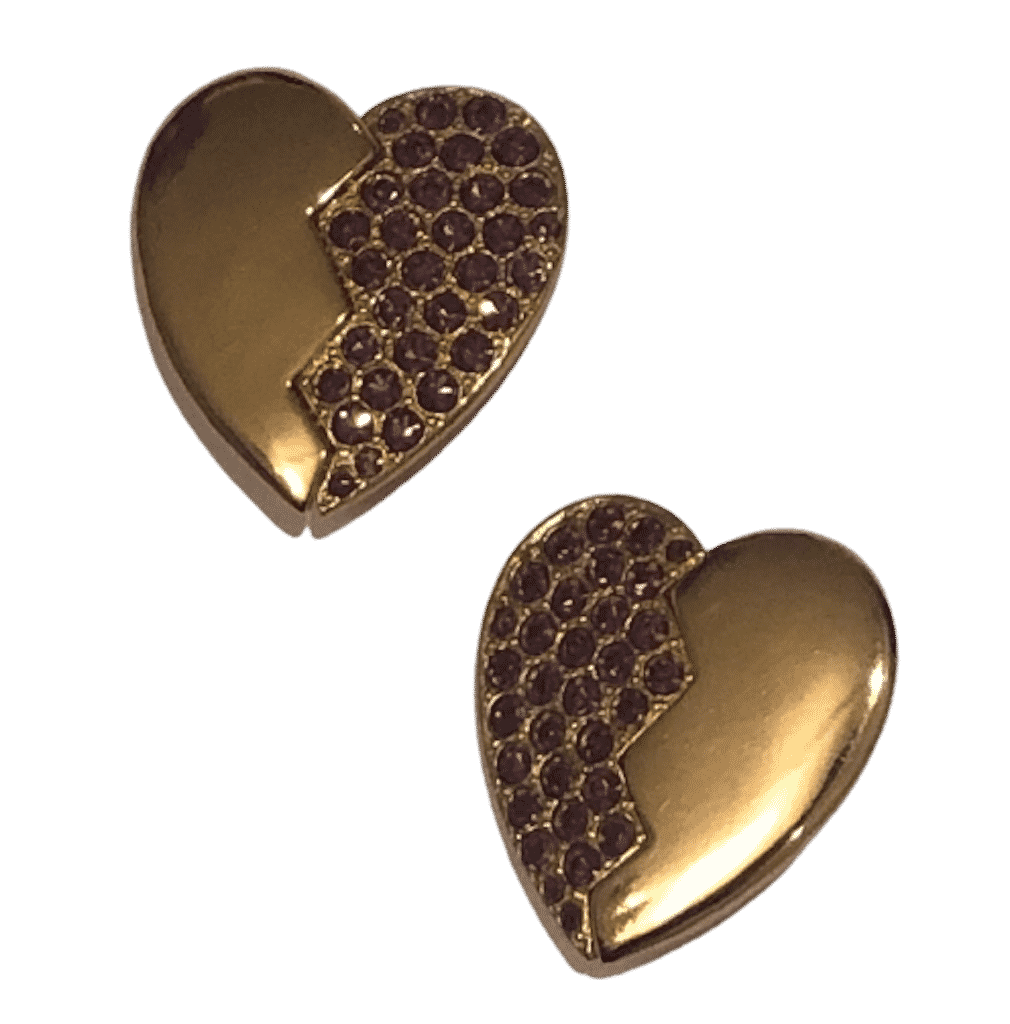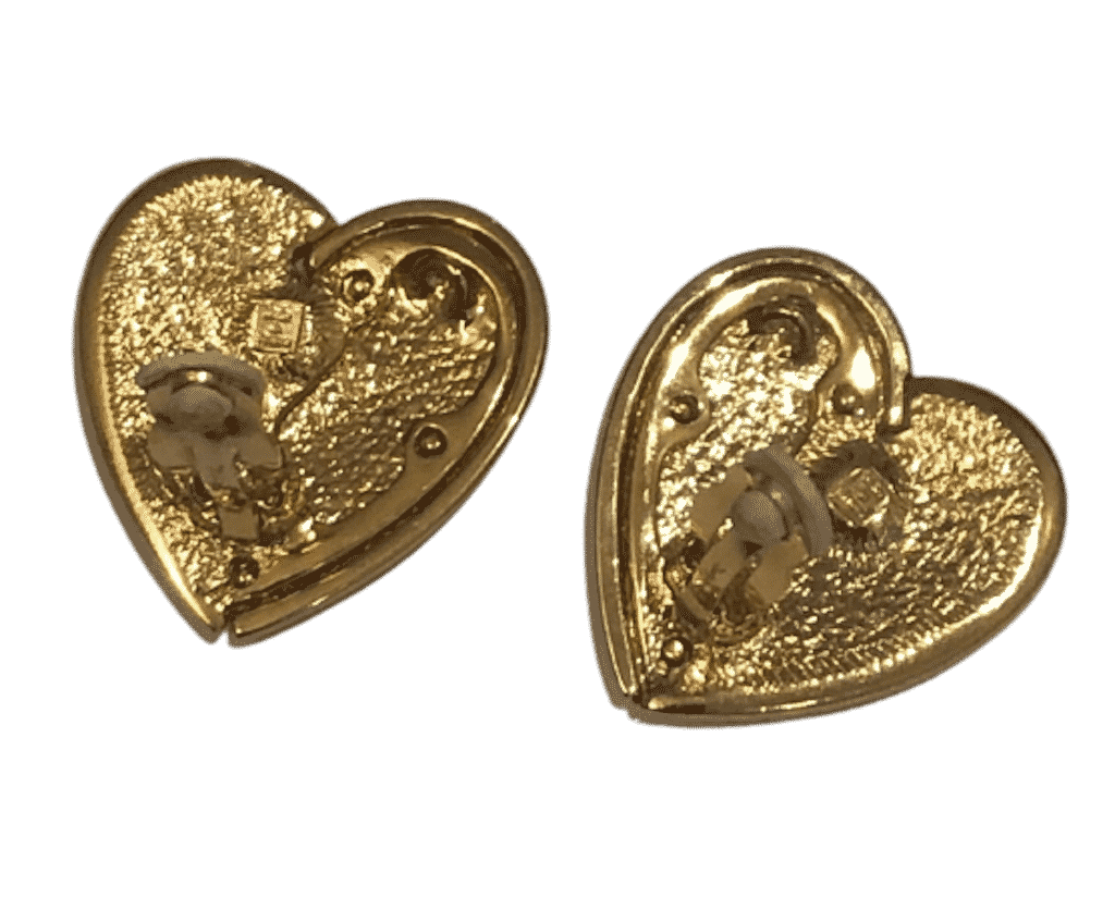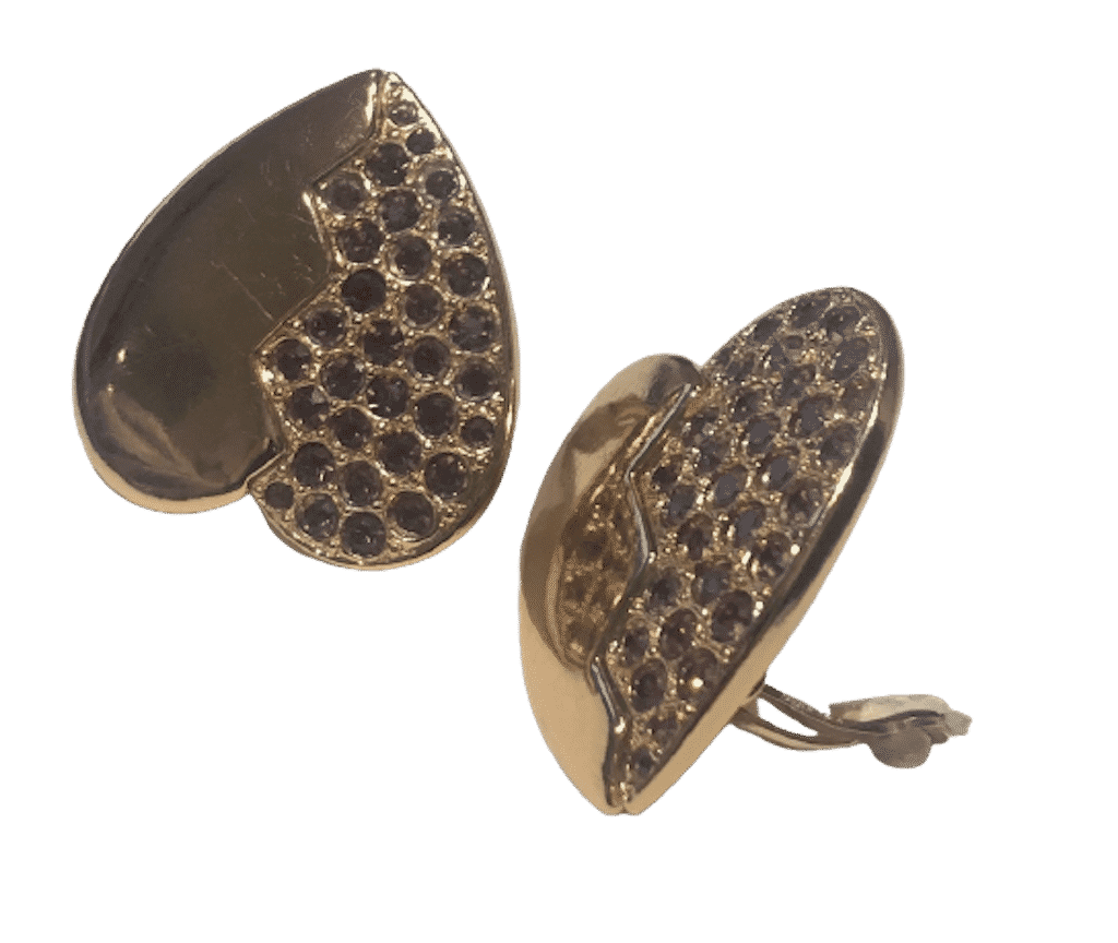 A stunning and rare Yves Saint-Laurent, spring/summer 1983, Haute Couture Collection. This amazing large clip-on drop earrings is made by Robert Goossens , heart-shaped with gilt metal and red diamente crystals. A very rare Haute Couture YSL-Goossens ‘Must-Have’.