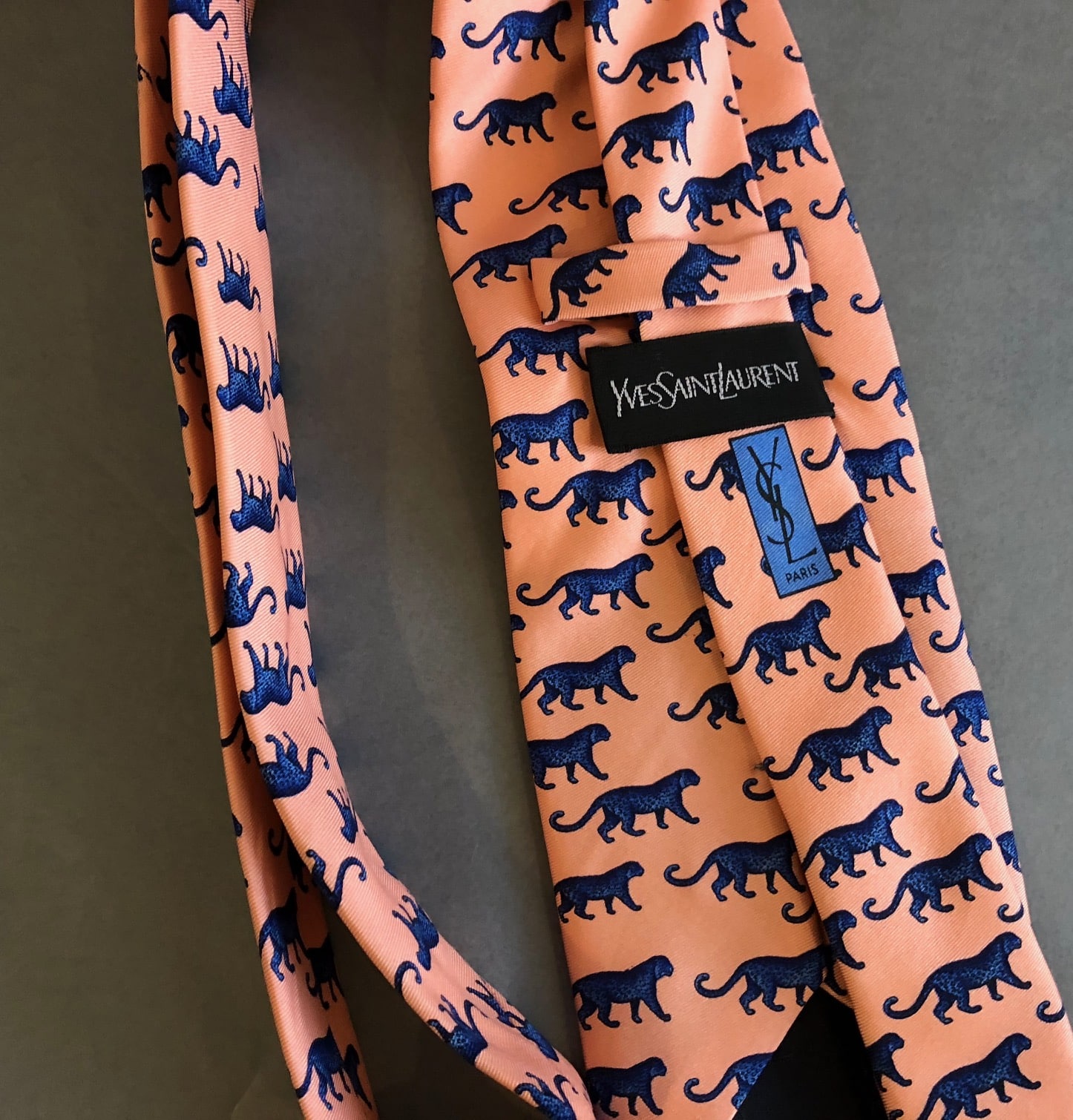 YVES SAINT-LAURENT Panther Prints Silk Tie