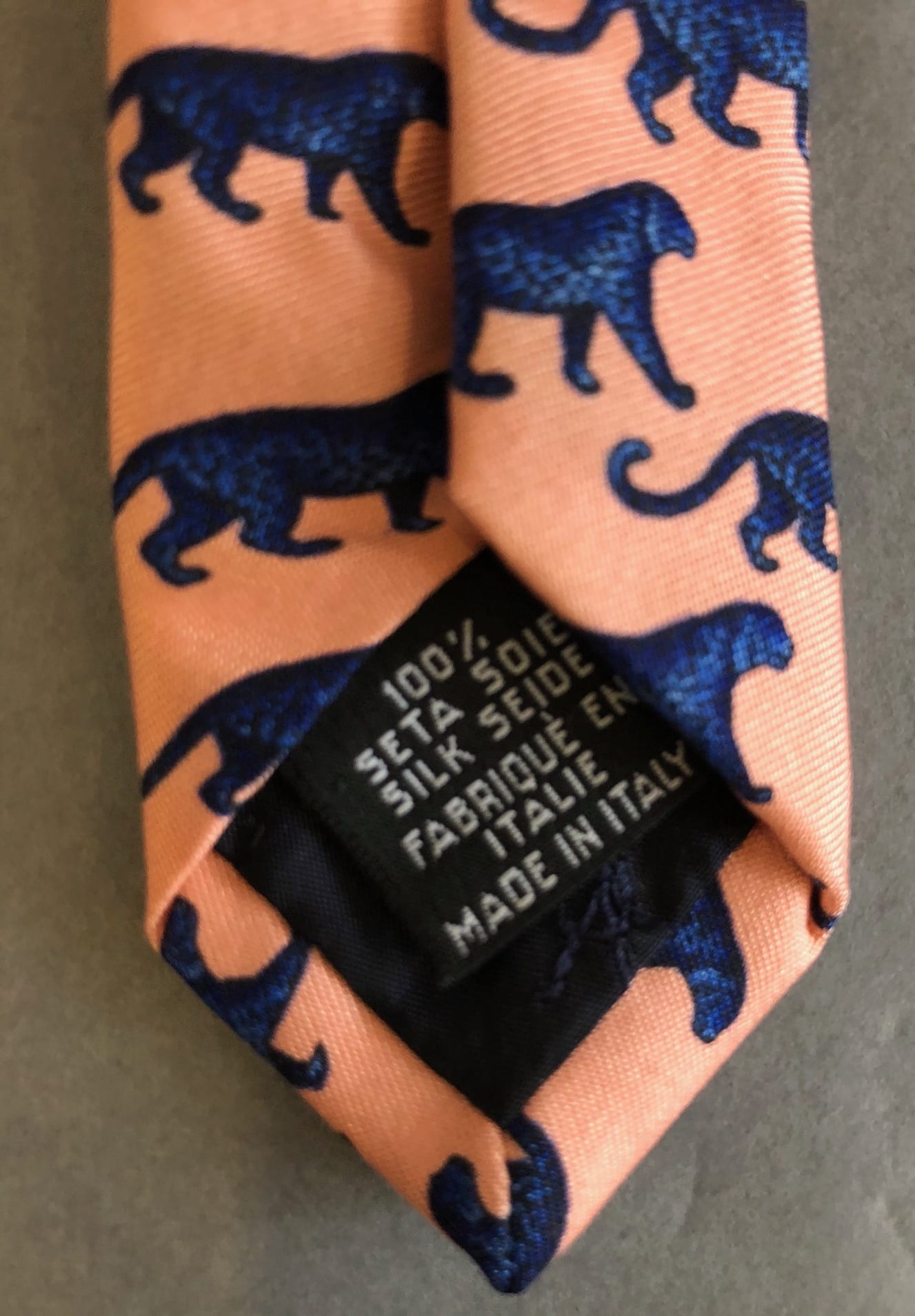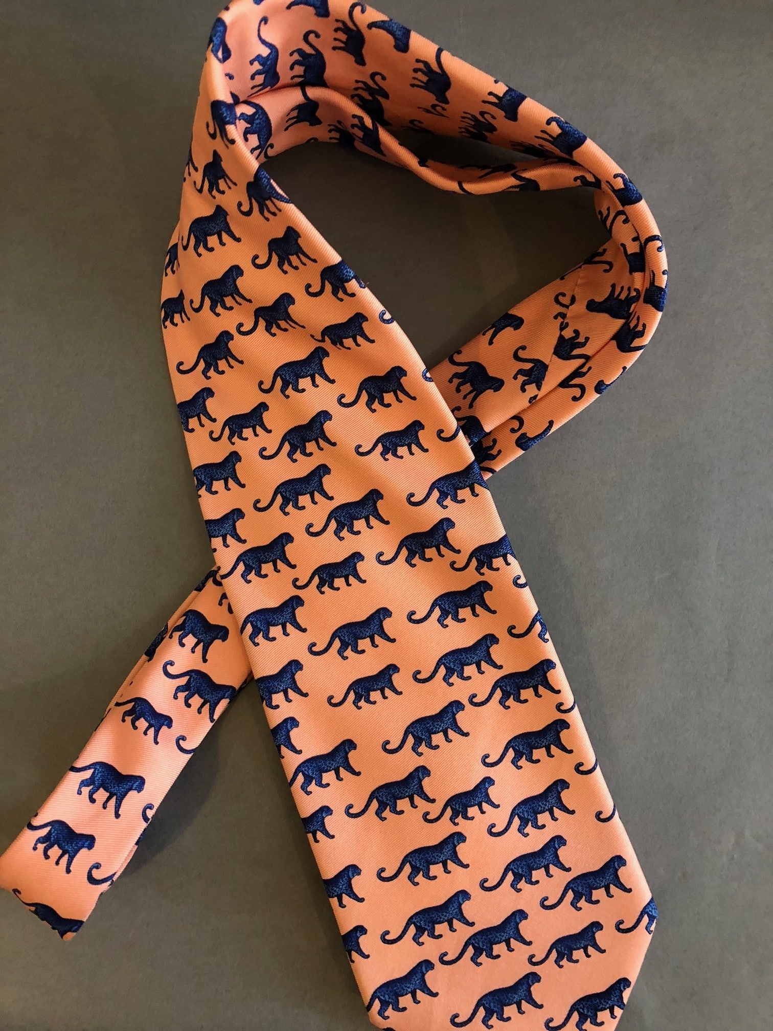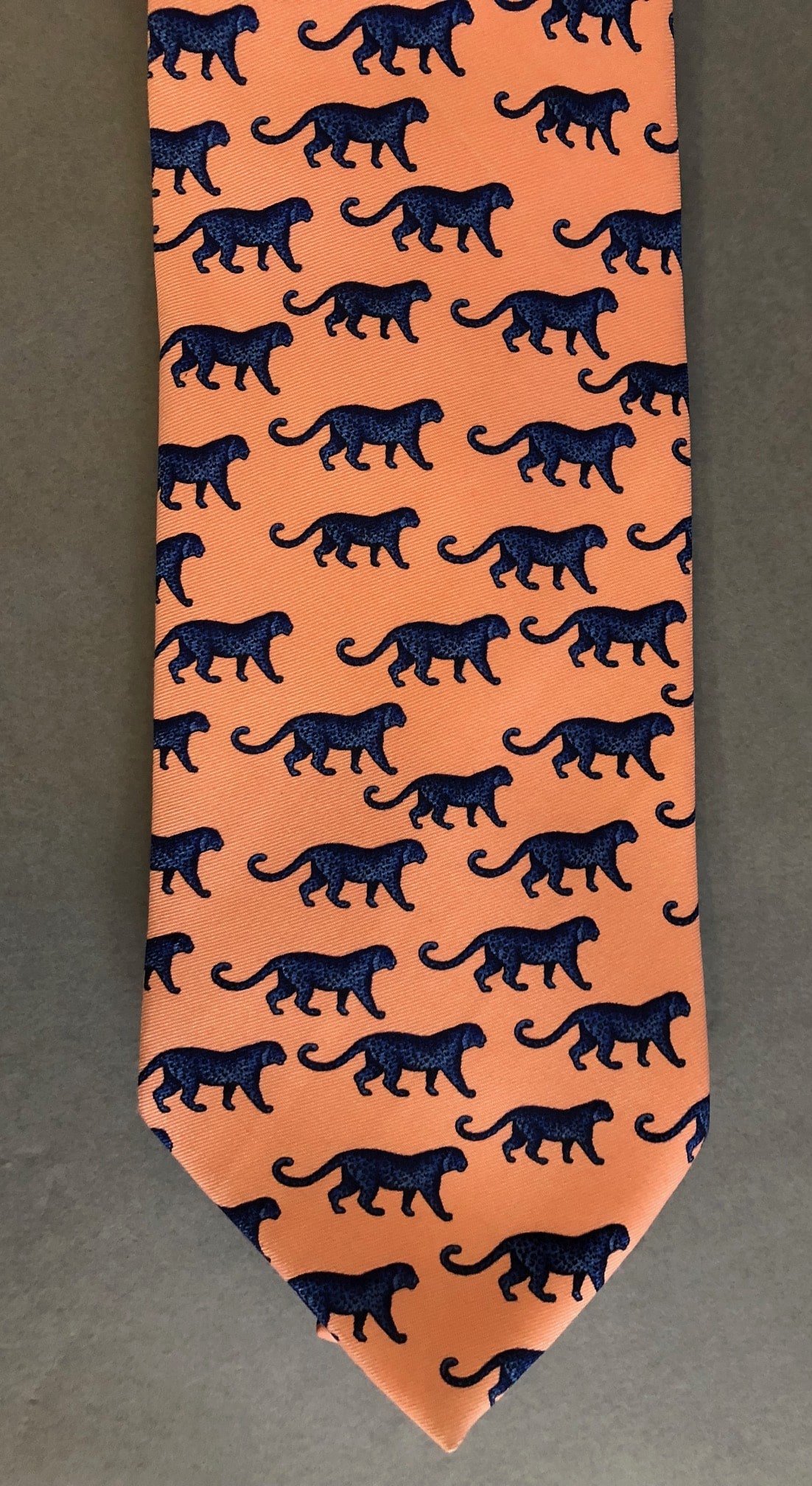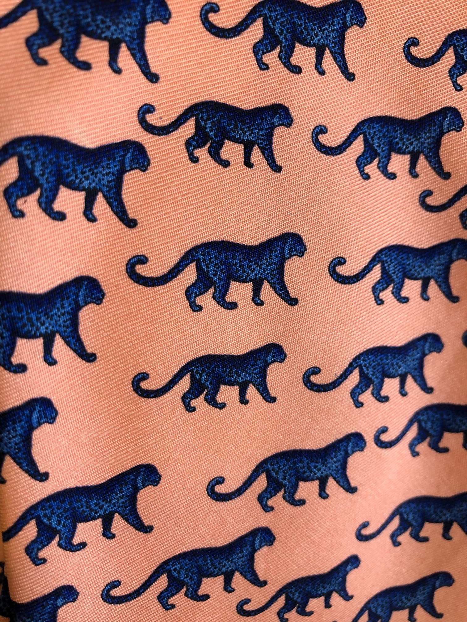Designed in a contemporary style, graphic print throughout body. Detailed with panthers in navy blue & black tones, soft blush peach colour.