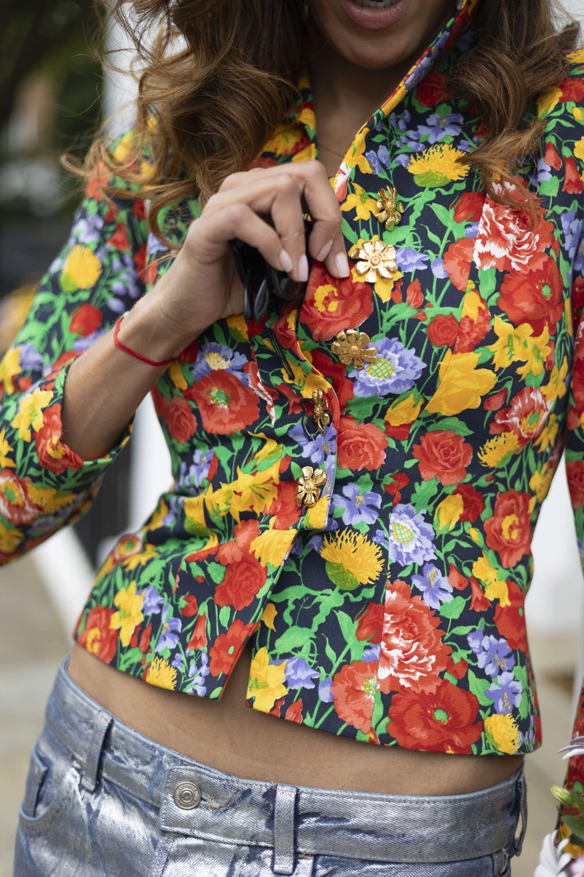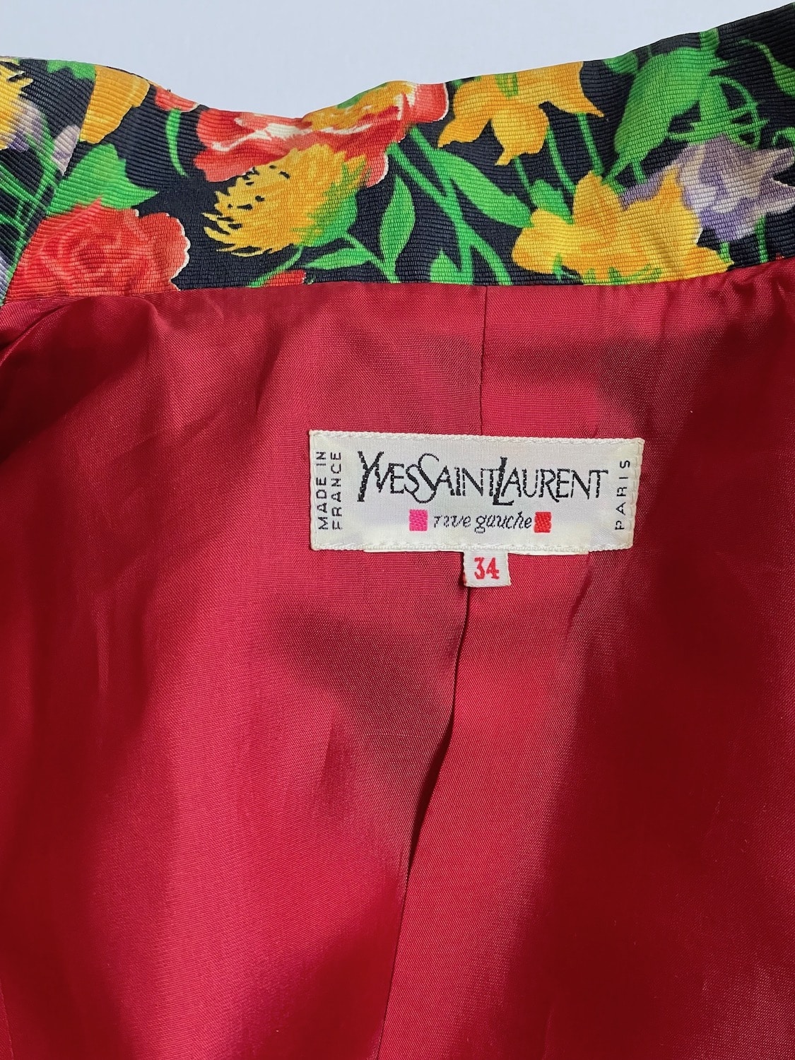 YVES SAINT LAURENT Rive Gauche Summer 1992 Floral Fitted Jewel Buttons Jacket Vintage