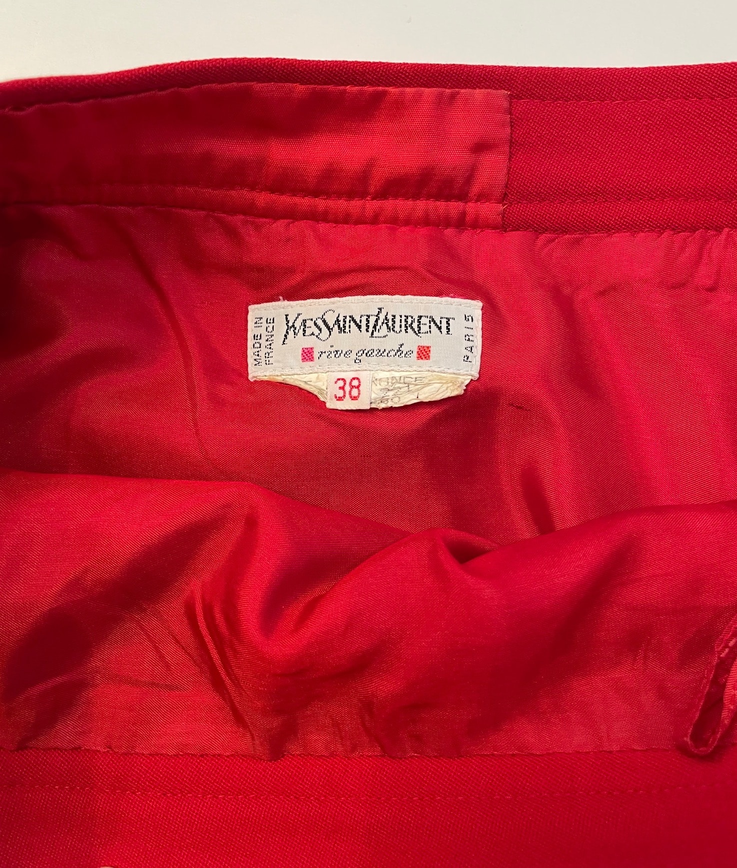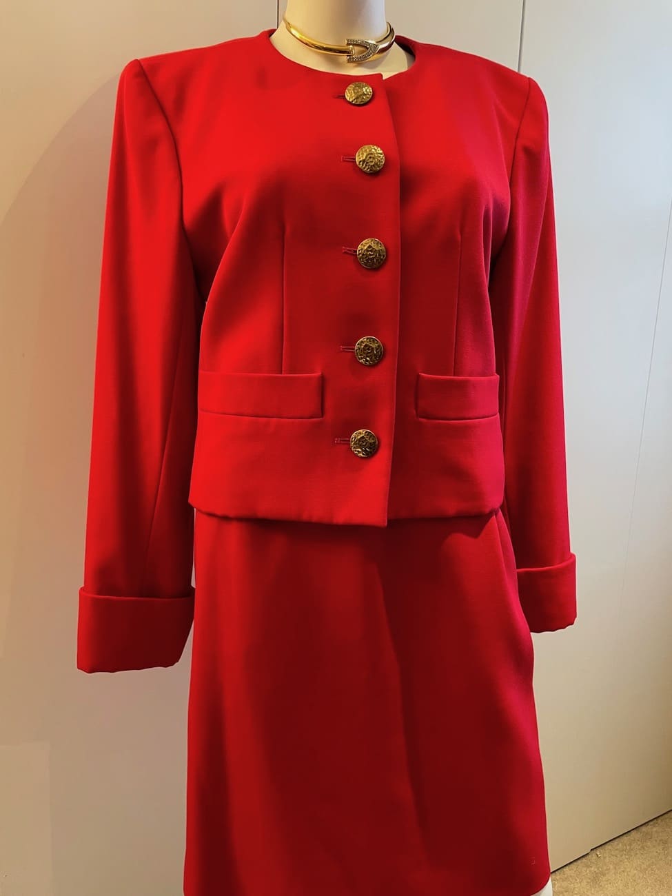 YVES SAINT LAURENT Rive Gauche Vintage Red Jewel Suit Jacket-Skirt C1980s