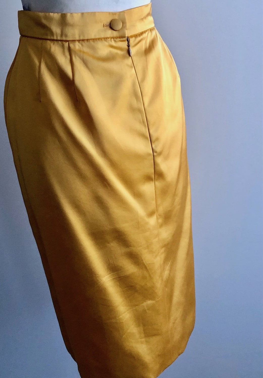 YVES SAINT LAURENT Variation Vintage Gold-Yellow Fitted Skirt C.1980s