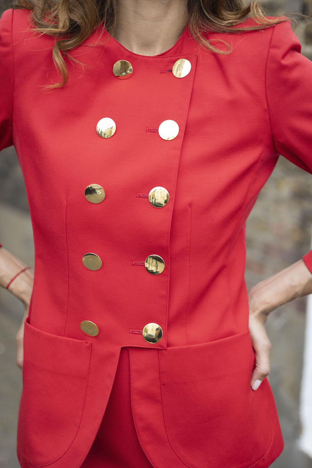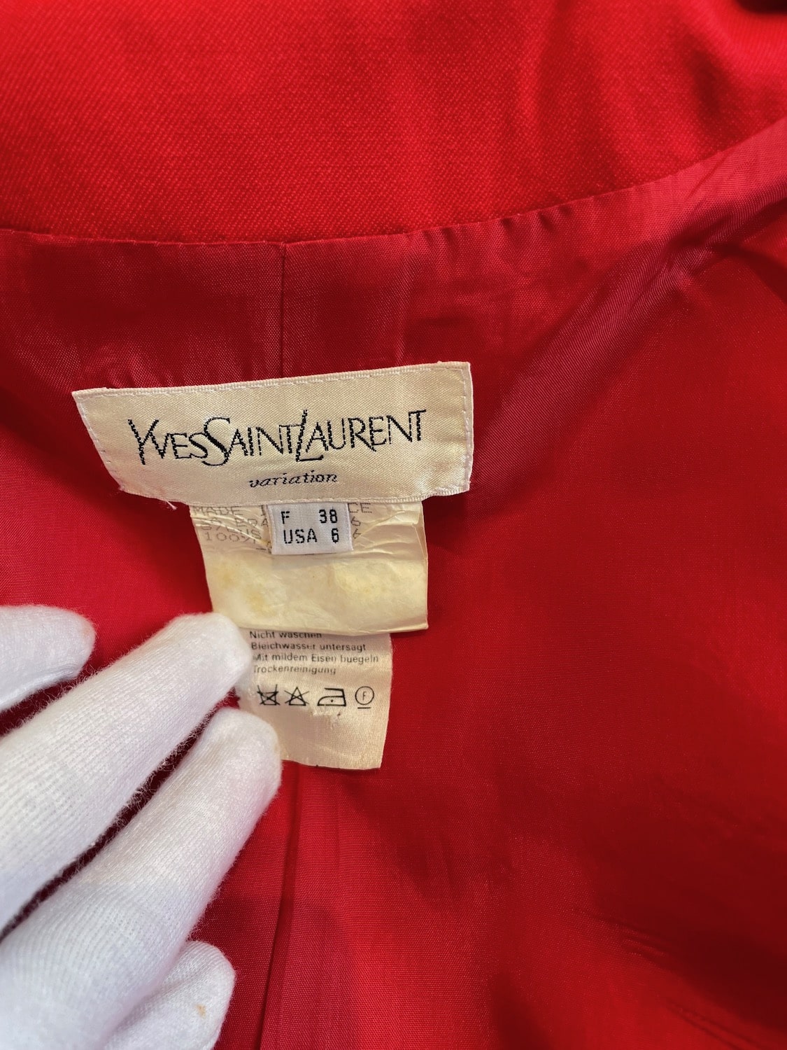 YVES SAINT LAURENT Vintage Blazer Dress Suit Red Variation C.1994