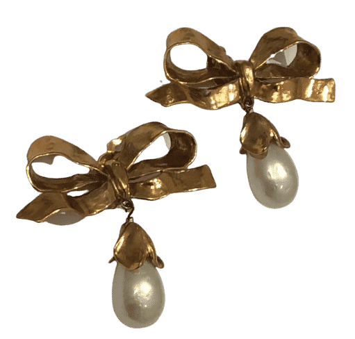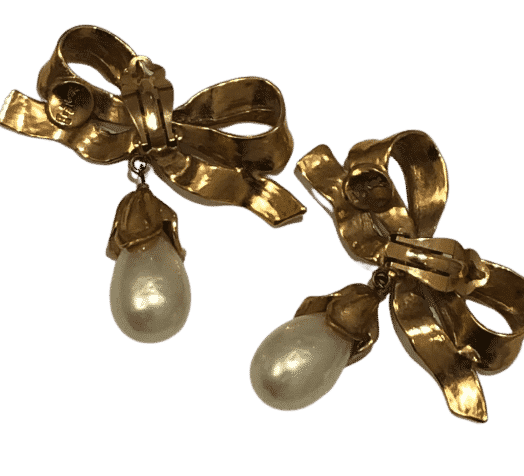 YVES SAINT-LAURENT Vintage By Goossens Bows Pearl Drop Large Earrings 1988