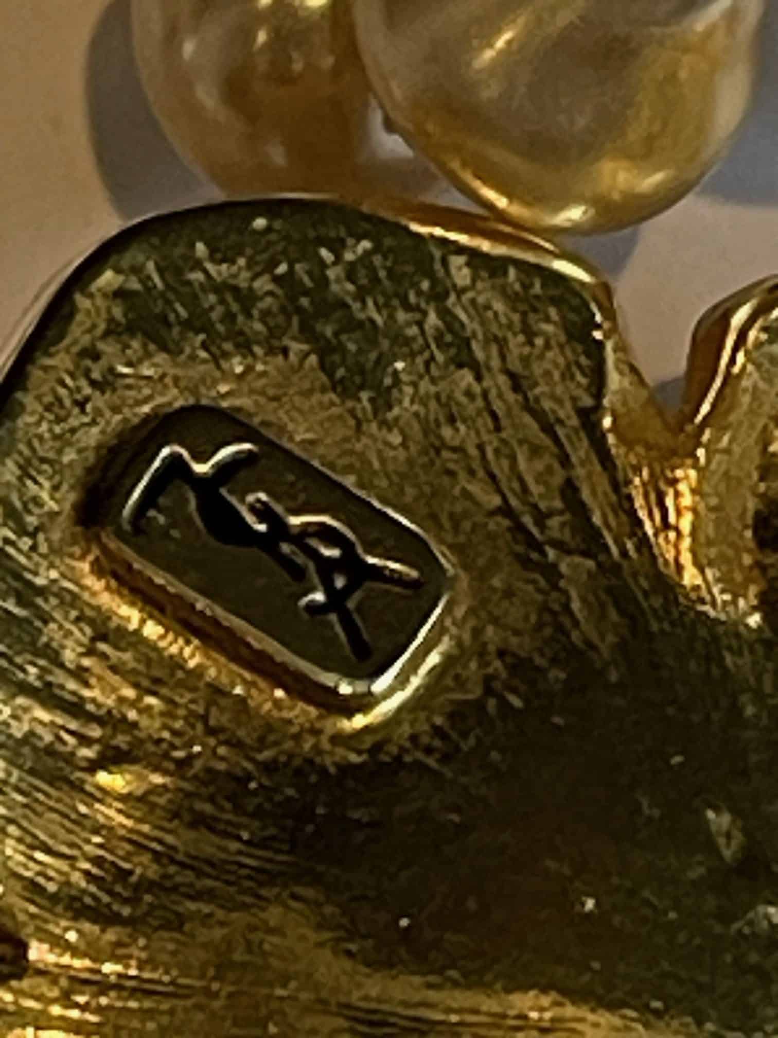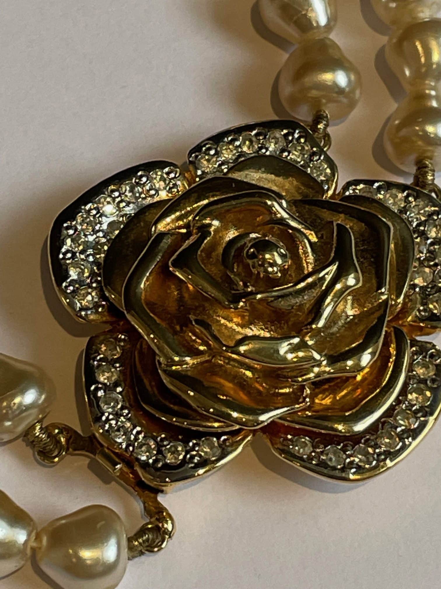 YVES SAINT LAURENT Vintage By Goossens Couture Pearl Gardenia Necklace & Earrings Set Gold-Crystal C.1980