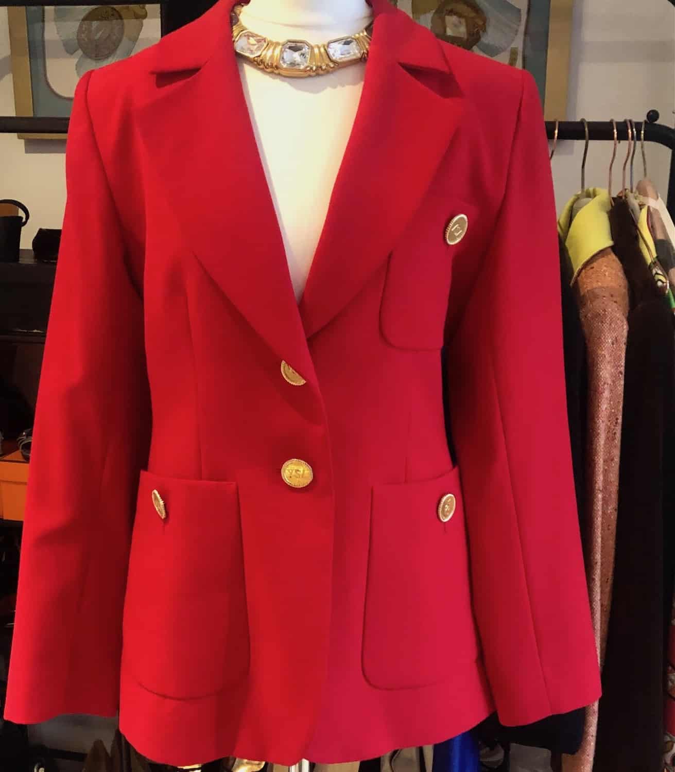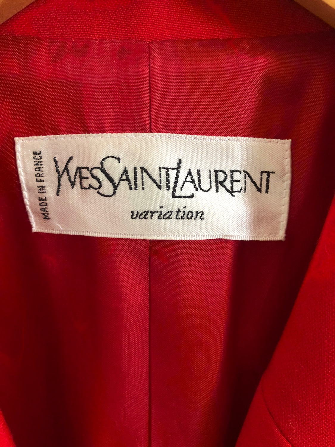YVES SAINT LAURENT Vintage Couture Red Jacket YSL Logo Buttons Circa 1980s