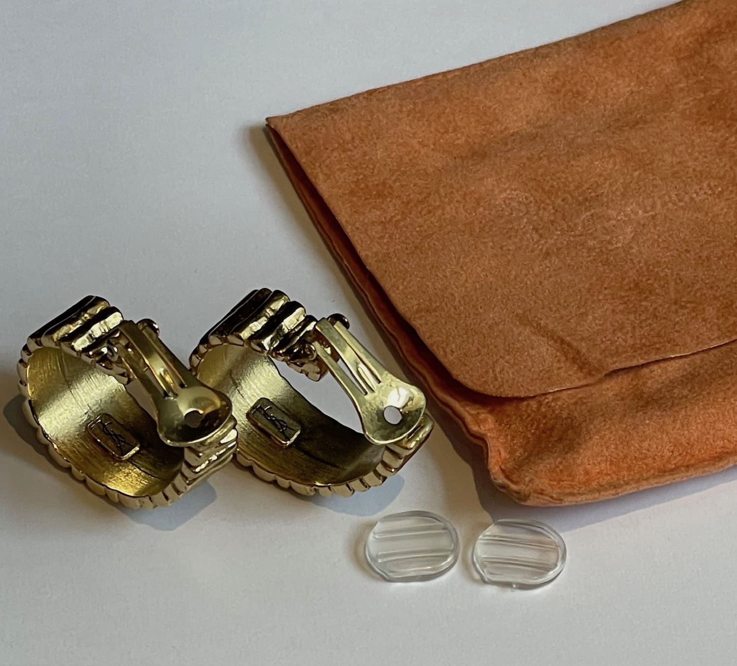 YVES SAINT LAURENT Vintage Couture YSL Large Hoops Earrings 18K Gold Tone C.1980s. A very rare, couture large gold tone clip-on earrings bark finish. 18k gold tone hardware, as new, never worn, from a private collection. A ‘Must-Have’, rare couture piece from YSL.