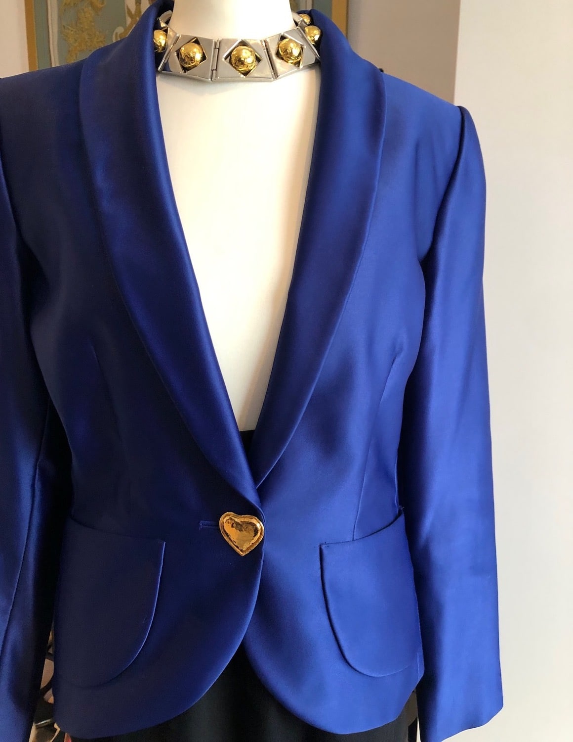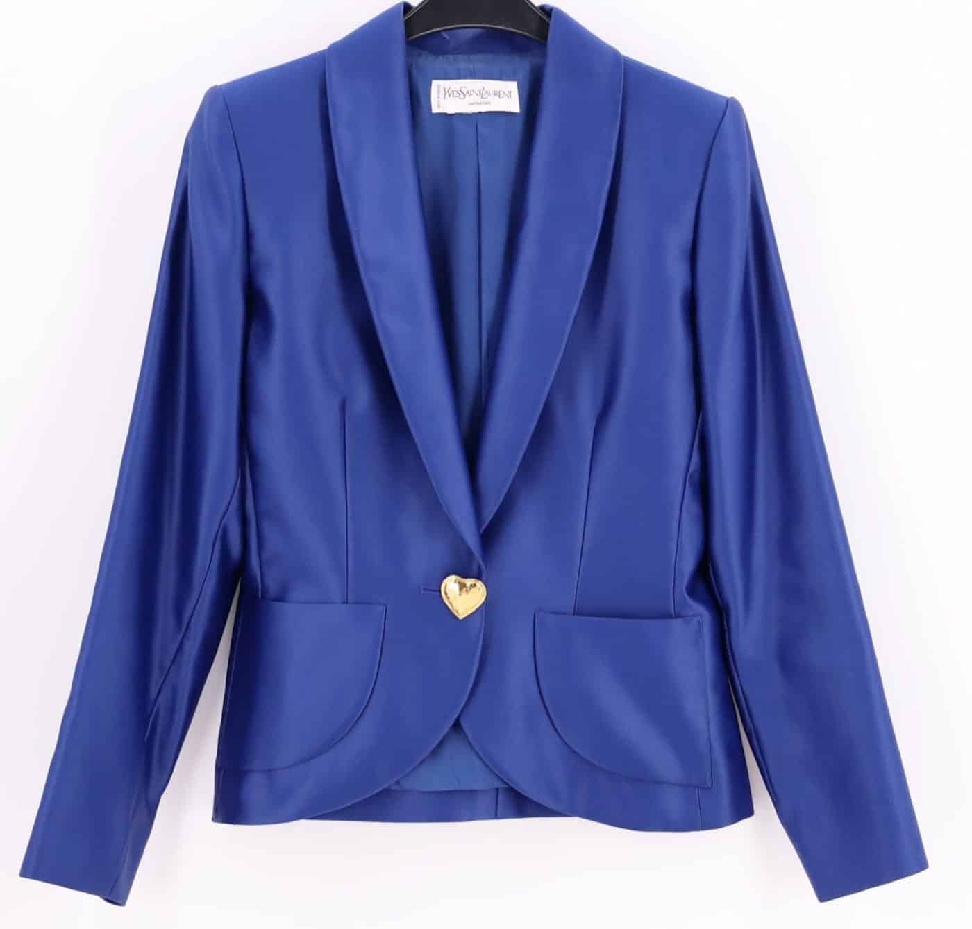 YVES SAINT LAURENT Vintage Runway Heart Logo Jacket Blue Single Breasted Circa 1980s