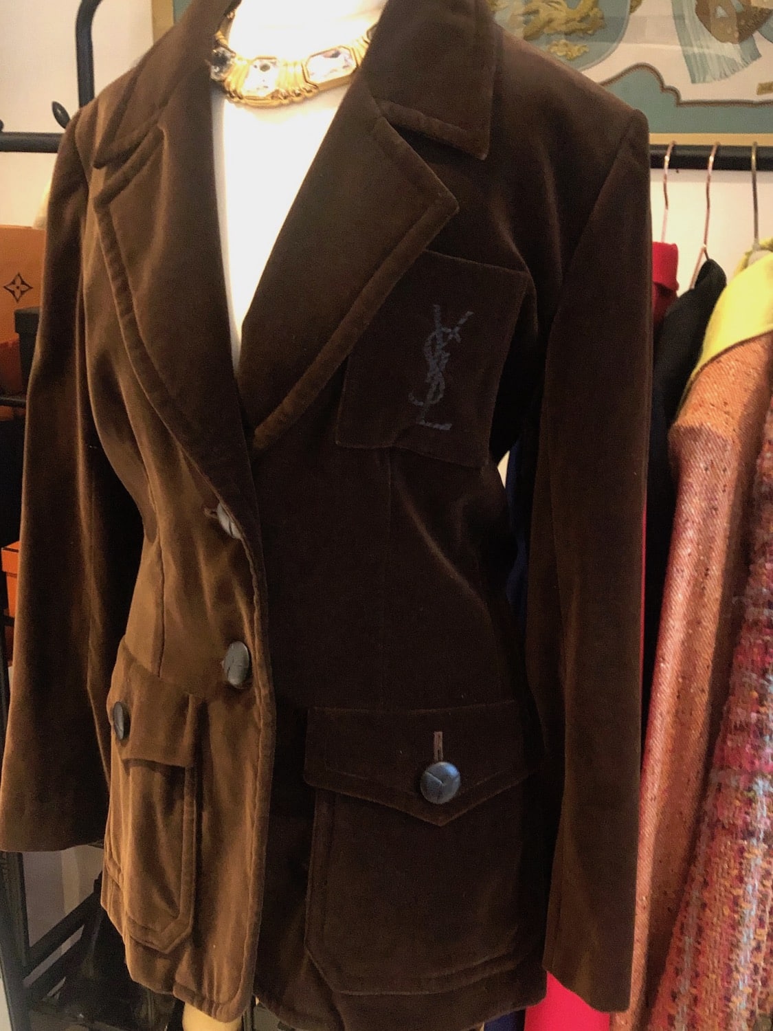 YVES SAINT LAURENT Vintage YSL Logo Jacket Brown Velvet Single Breasted Circa 1980s